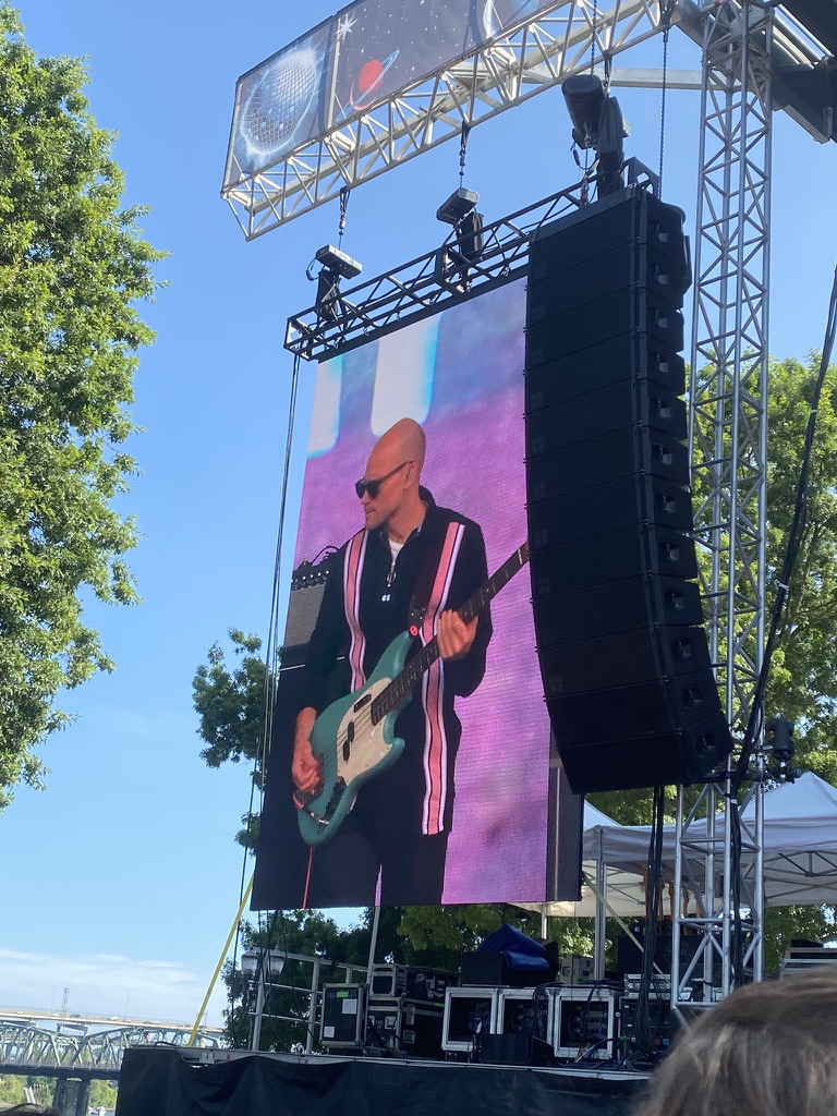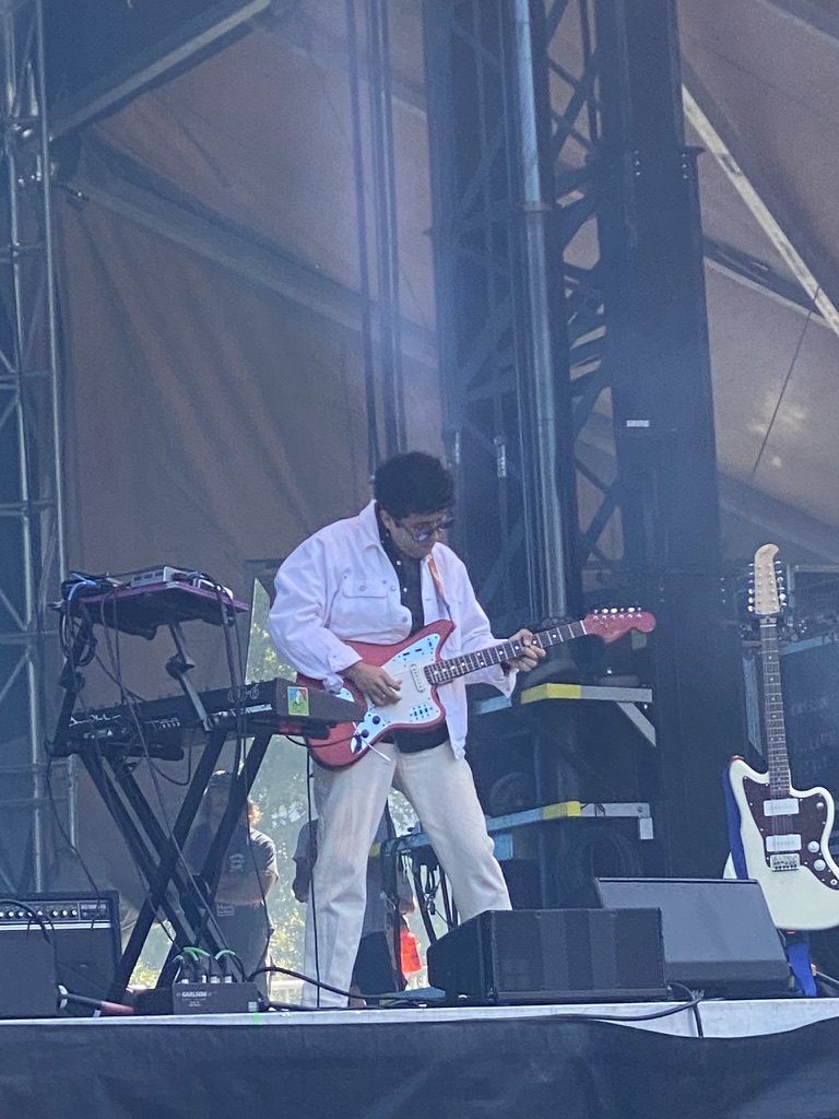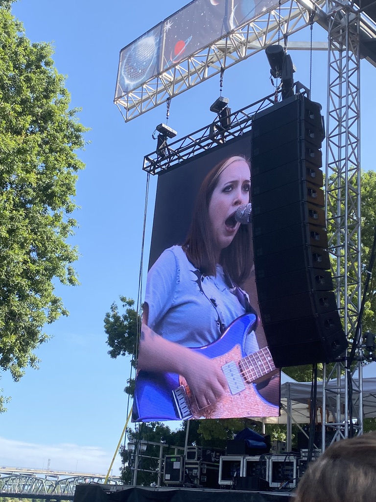 Soccer Mommy’s music meant a lot to me when I was low, though I prefer her older songs, recorded more simply, her new stuff is good too and her band played very well. The stage was decorated with a lo fi video tape look from a projection, her band name in huge letters, but cars driving and waving palm trees. Footage taken from cars by a naive filmmaker, the scenery of California going by, the rearview mirror: it fit her music well I thought.