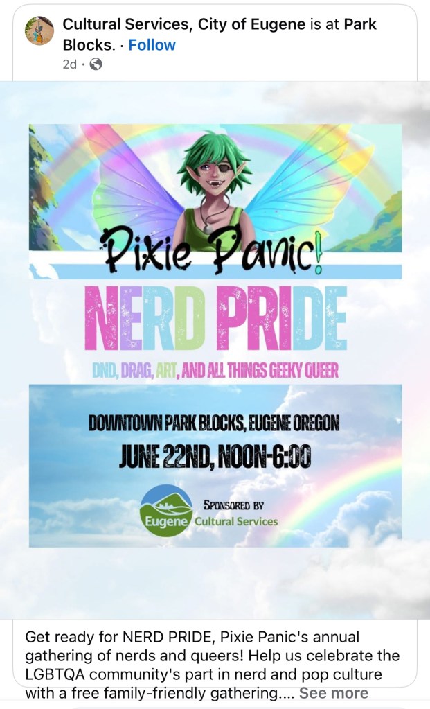 I hope to see you there! 12 at the park blocks in Eugene, Or. I’d like to table at more events. I’ll keep an eye out for more events.