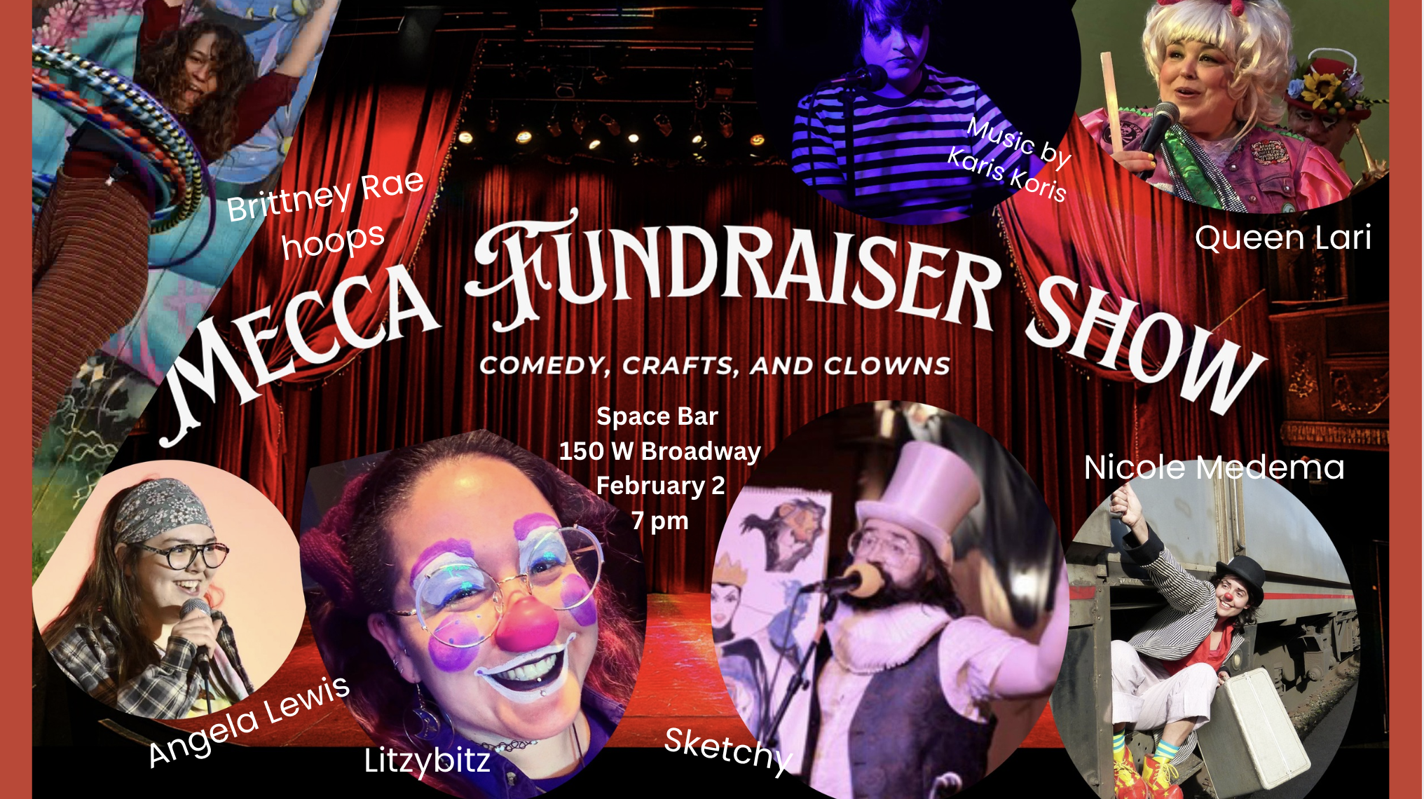 both shows are in Eugene. On Feb 24 I’m playing with my band, on Feb 2 i’m hosting some silly clowns and comedians. this is a fundraiser for MECCA. the materials exchange center for community arts (or crafting and arts)