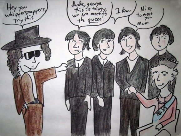 I was curious about my favorite music group, the Beatles, perhaps you’ve heard of them- I wondered was there anything interesting they did in their lives that could explain the strange and beautiful music that they made, and is there anything I could do to be at least a small bit like them? I read that a man named Bob Dylan turned them on to grass, and they even smoked week one day before meeting the queen.