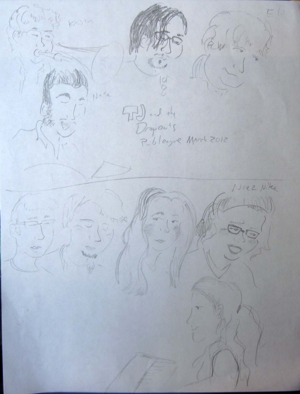 Summer 2011 drawings, Fairbanks Summer Arts Festival, The Wailers, Bill Anshell Trio, Brad Boal, Pretty Birds that Kill, Robin Dale Ford, Pat Fitzgerald, Paige Compton, Saucy Yoda, 907 Britt, New Cut Road, Avery Wolves, Ron Velez, Giacomo Gates, Mike Stevens, Raymond McClane
