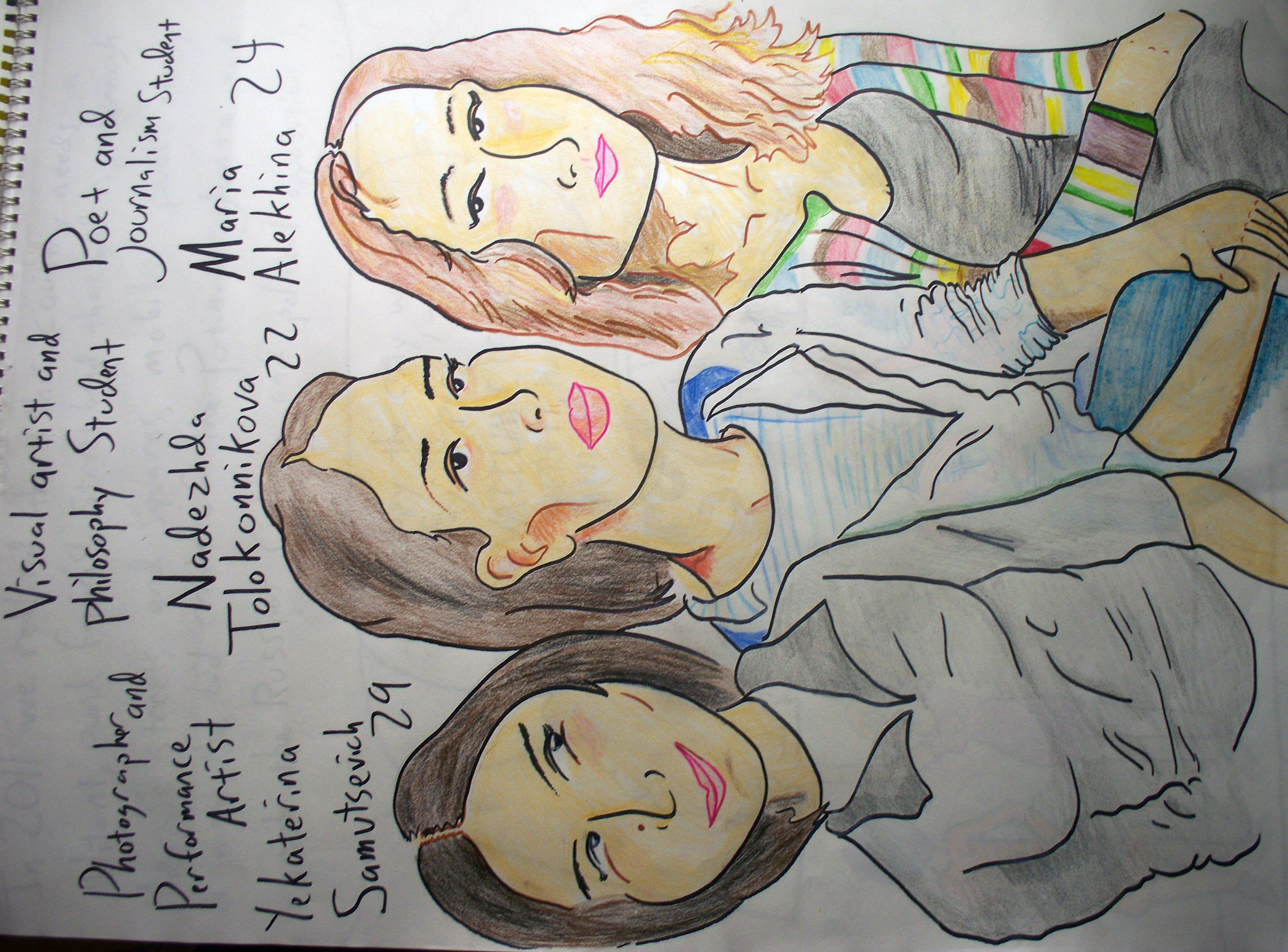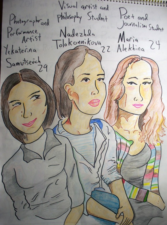 Maria Alyokhina, 24, Nadezhda Tolokonnikova, 23, and Yekaterina Samutsevich, 29