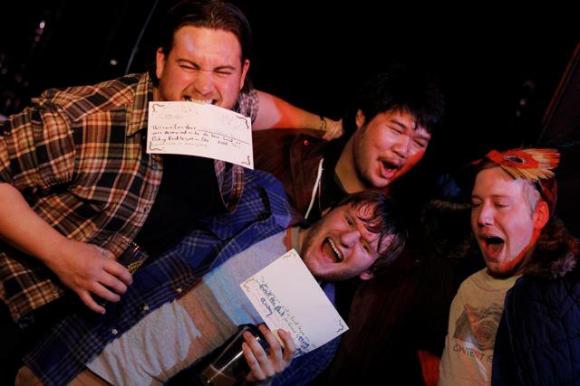 “Truck Vs Mall” featured Eli Barry Garland, Bernie Bousa, Bryan Whitten and Nathan Zody all bedecked in flowery boas and masks. They won best band and best cover as well, for a wild rendition of “F the Pain Away” by Peaches.