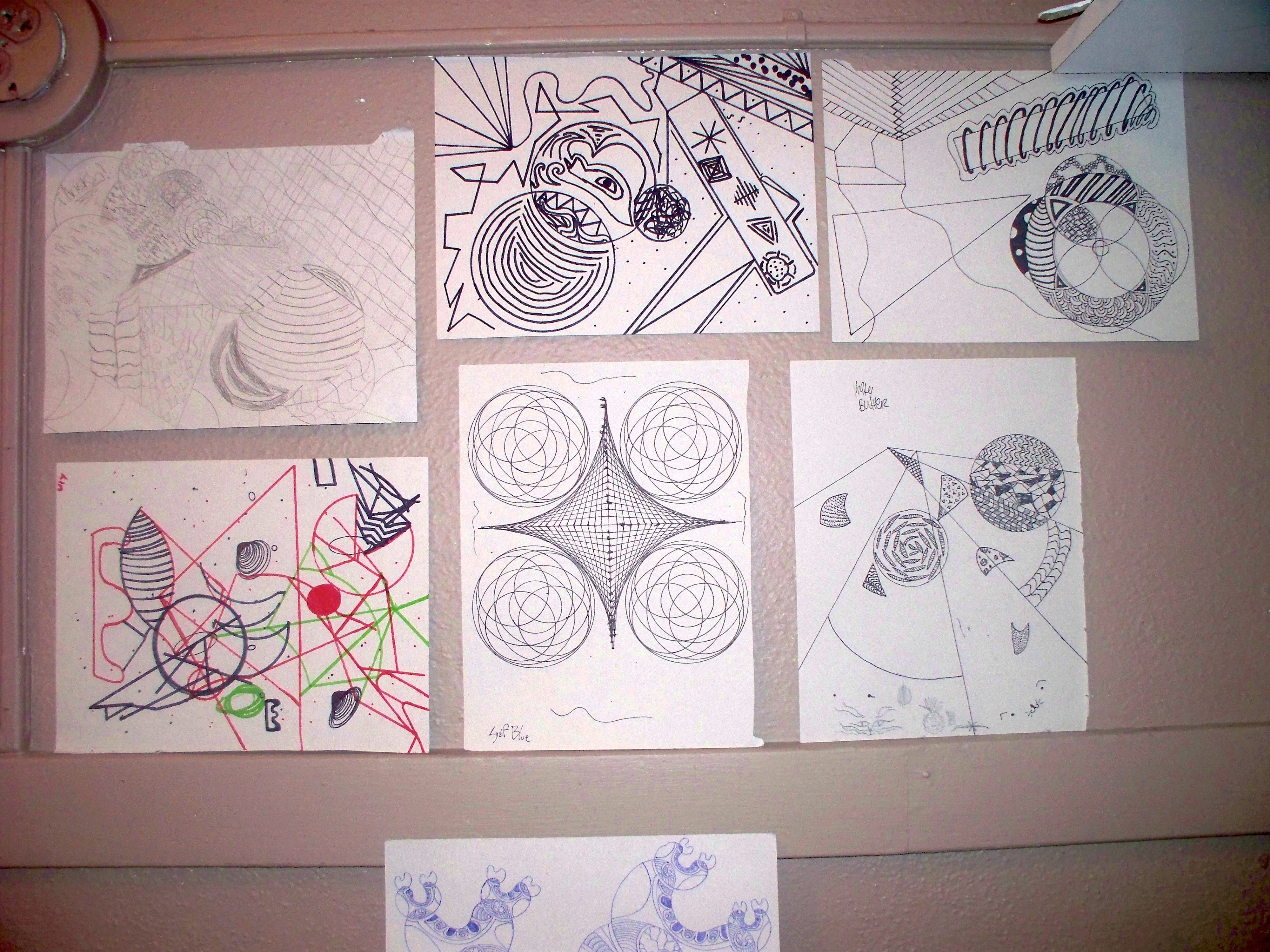 First day of Woodcut, students made Zentangles, to experiment with line, texture, and shape.