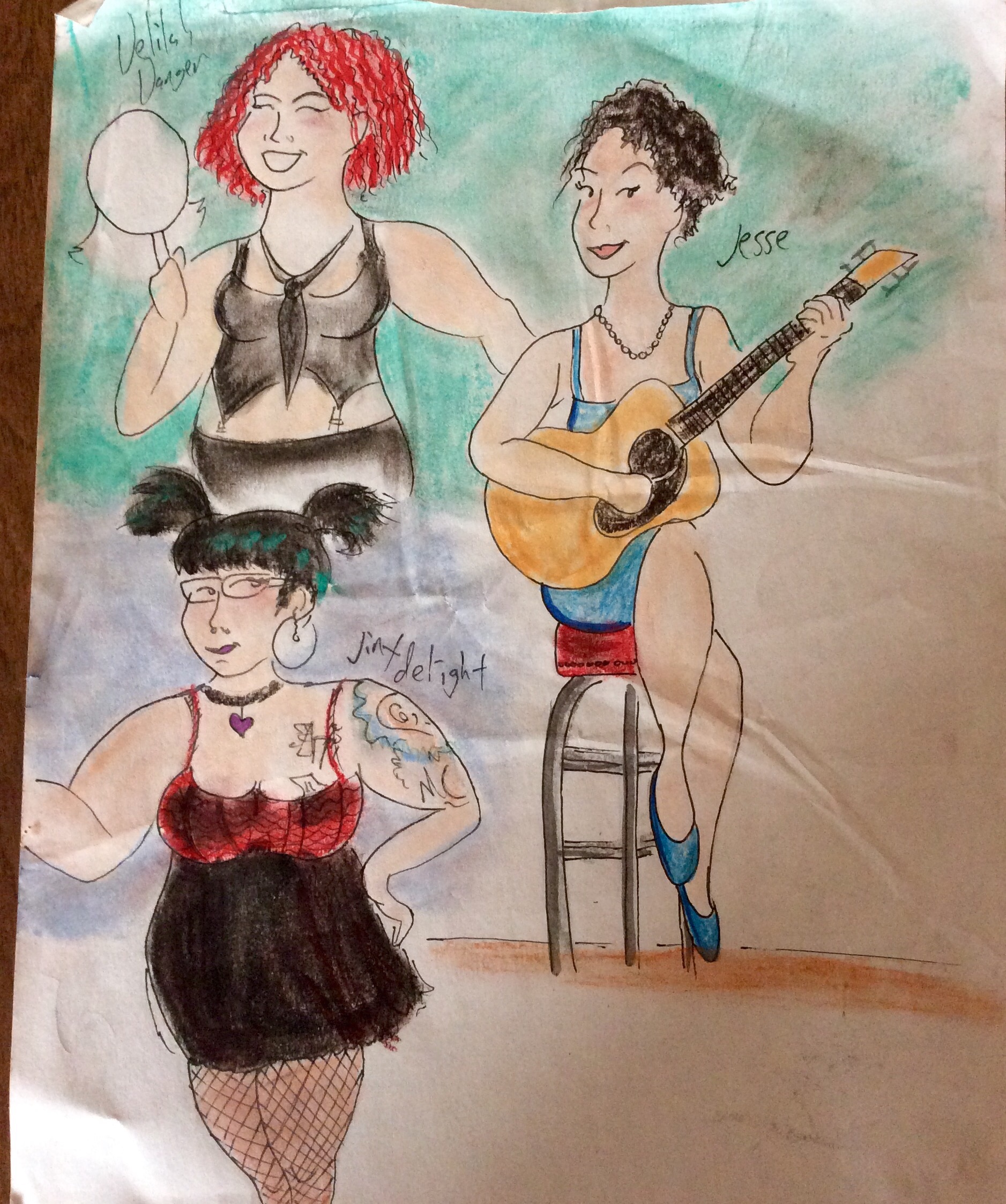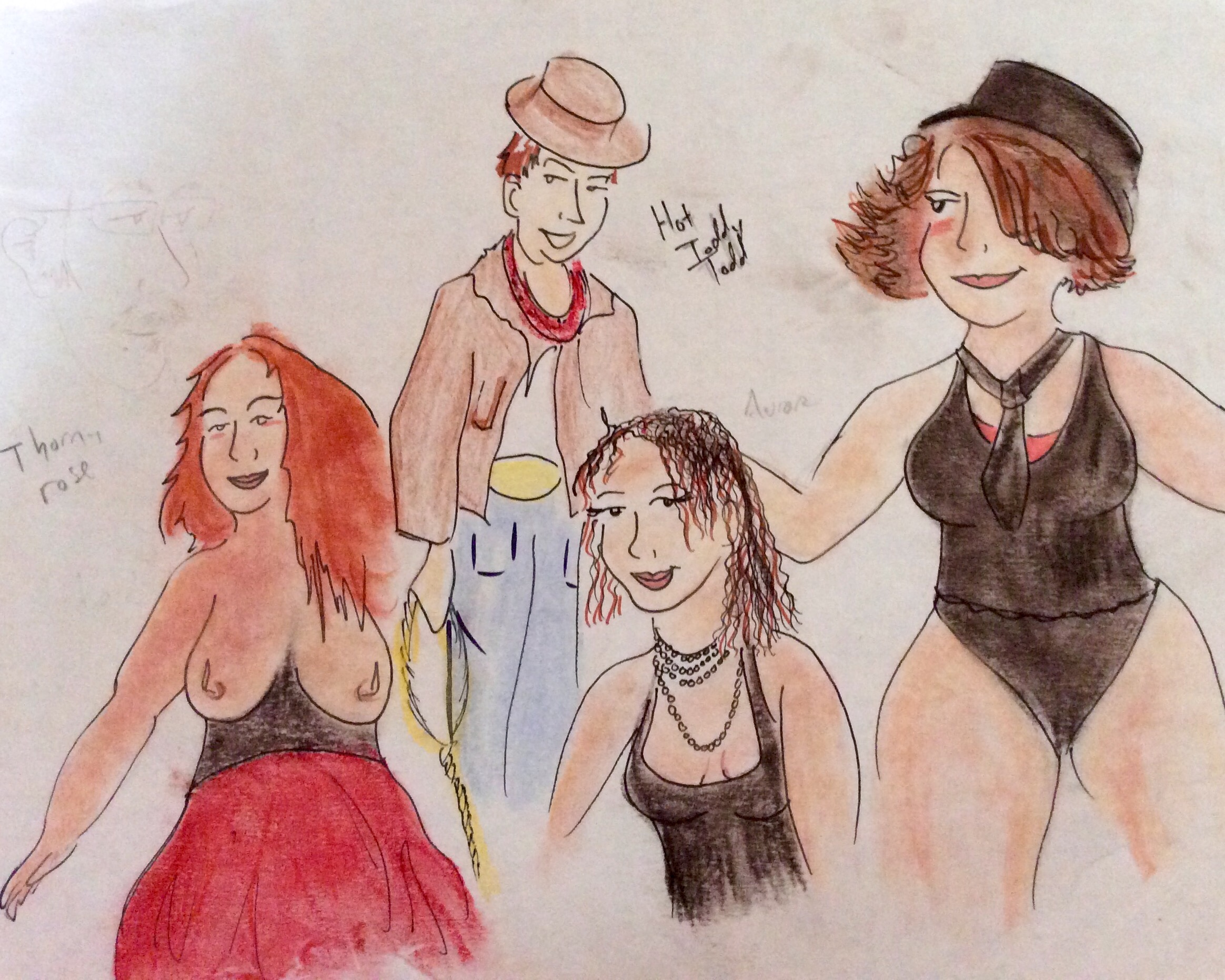 Annual fundraiser for AYP: the Hot Mess! I did a stand up comedy set and I drew these lovely dancers. The photos are by Ronan guillou. You can judge how accurate my drawings are, and I’m grateful to him because I used them for reference.