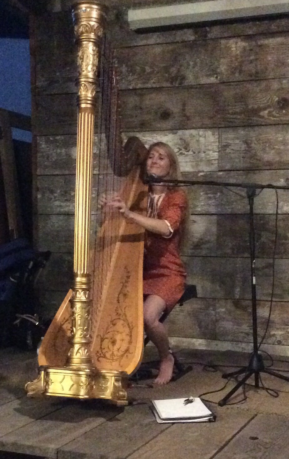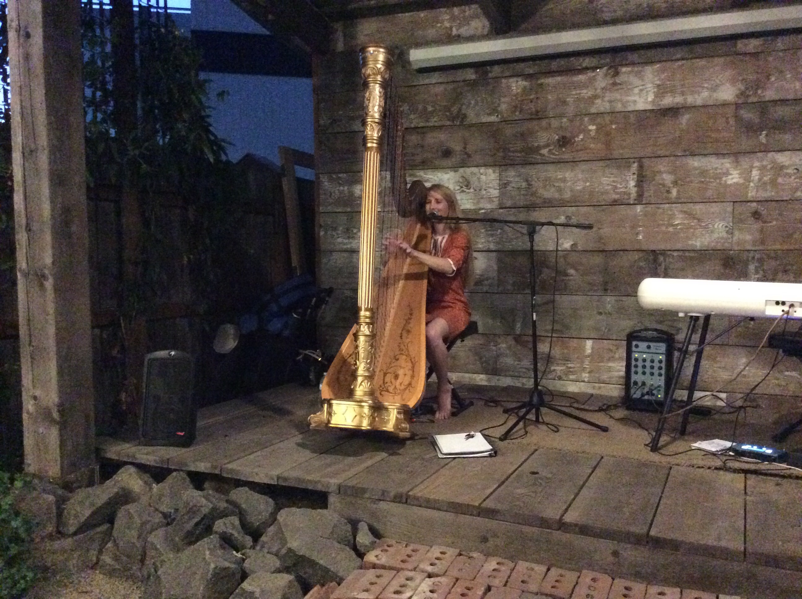 I especially liked “Dark Blue, Dark Green.” It, and every song on her EP “To The Moon,” seem to be about the passing of a close friend. In her song, “Right Now,” she sings hopefully, ” Like a callus on a finger, over time it just makes you stronger, than if you had it, if you took it right now. Put the time in, and the effort, you will find you get what you deserve. You will find all truly right now. ” She told us the song is about her process of learning to play the harp, but you can apply it to anything you are trying to achieve.