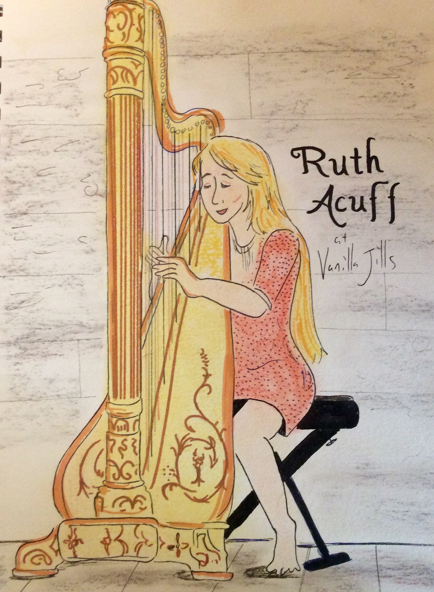Ruth plays a harp and writes beautiful, inspirational songs, about Love, loss, and the rugged endurance of ubiquitous weed Queen Anne’s Lace.