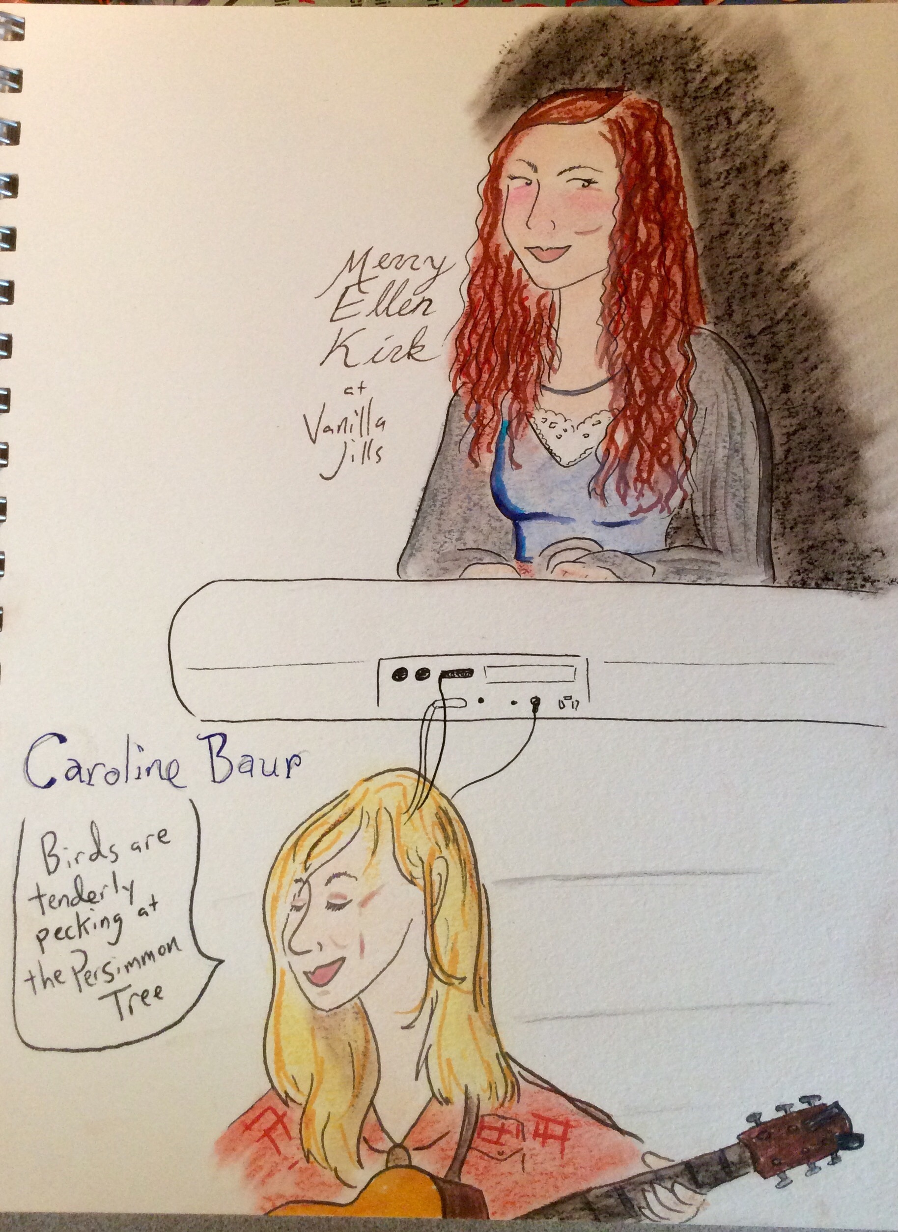 Sometimes she achieves an ethereal mood through strumming, sometimes arpeggios, and of course, beautiful glissandos. Her music is available here. Though her recordings have overdubs of cello, voices, water sound effects and even drums, I highly recommend you see her live. She had on her adorable merch table a handmade zine about her love of music, how she came to play the harp, and a bit about the mechanics of the instrument. It would be far too obvious to compare her to Joanna Newsom, so instead, I’ll say she reminds me at times of Enya, Bjork, and occasionally the indie pop sweetness of Sufjan Stevens, and Regina Spektor.