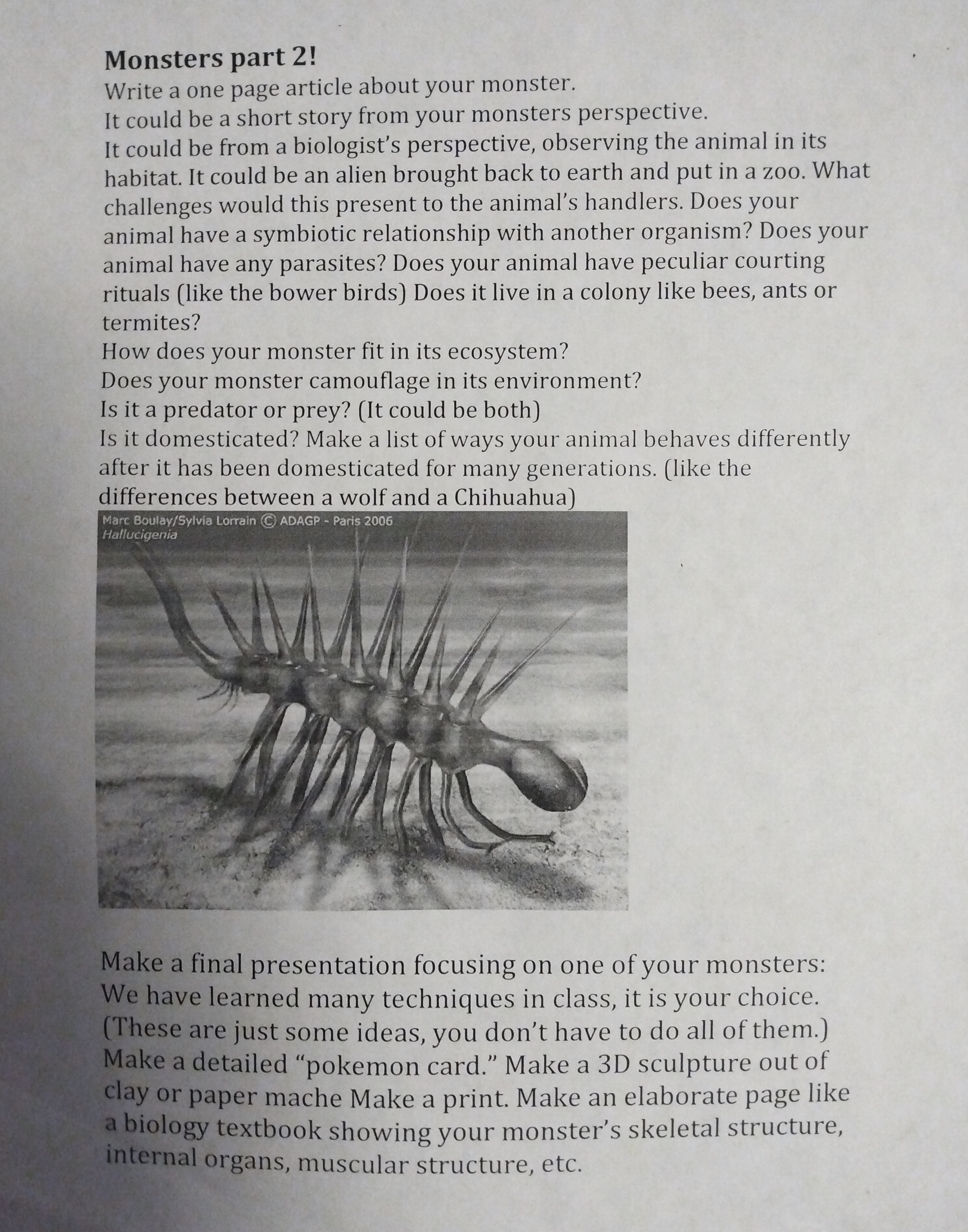 I asked students to sketch 5 monsters and choose one to really dive into.