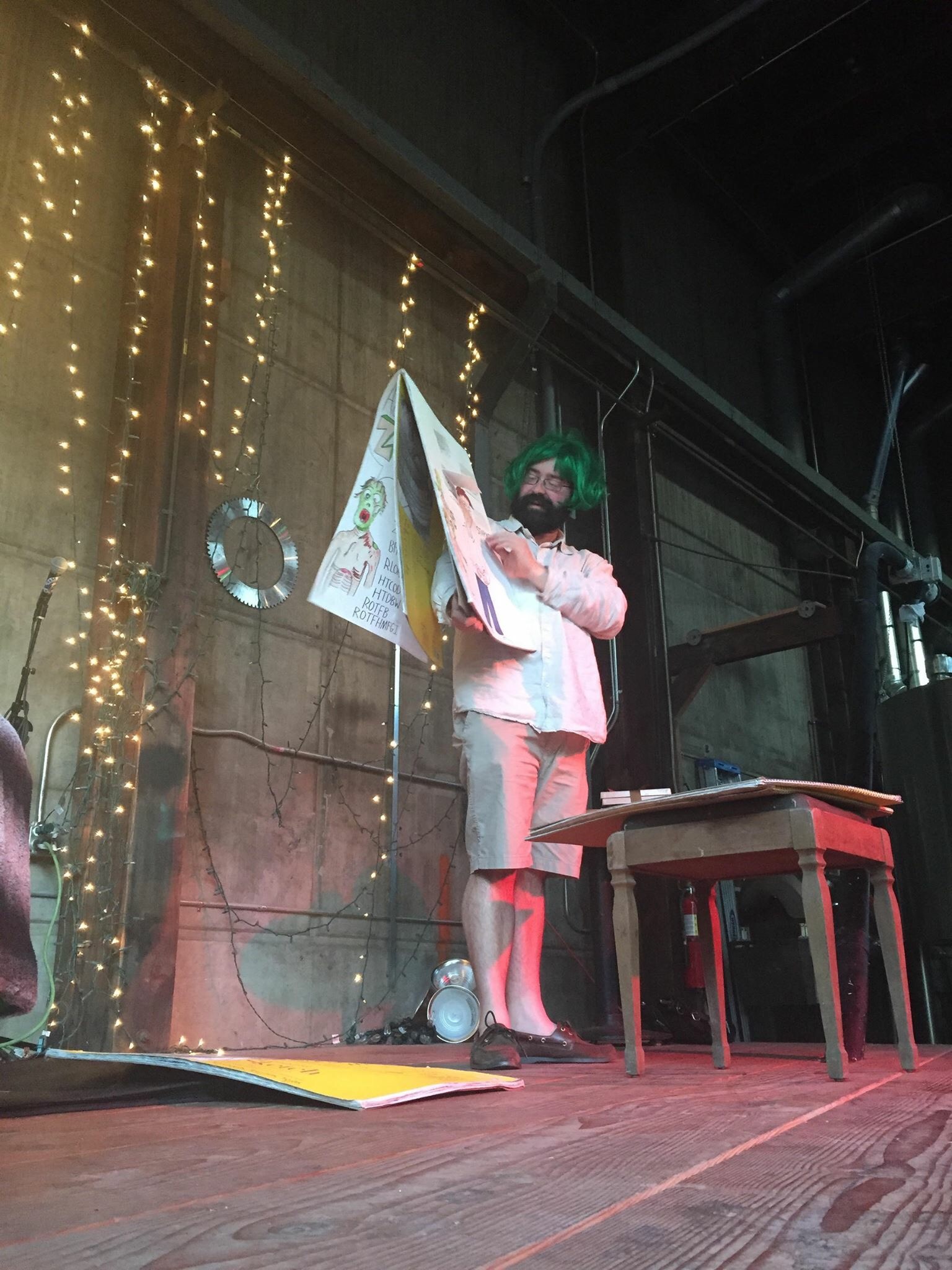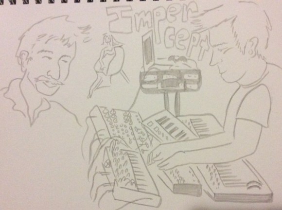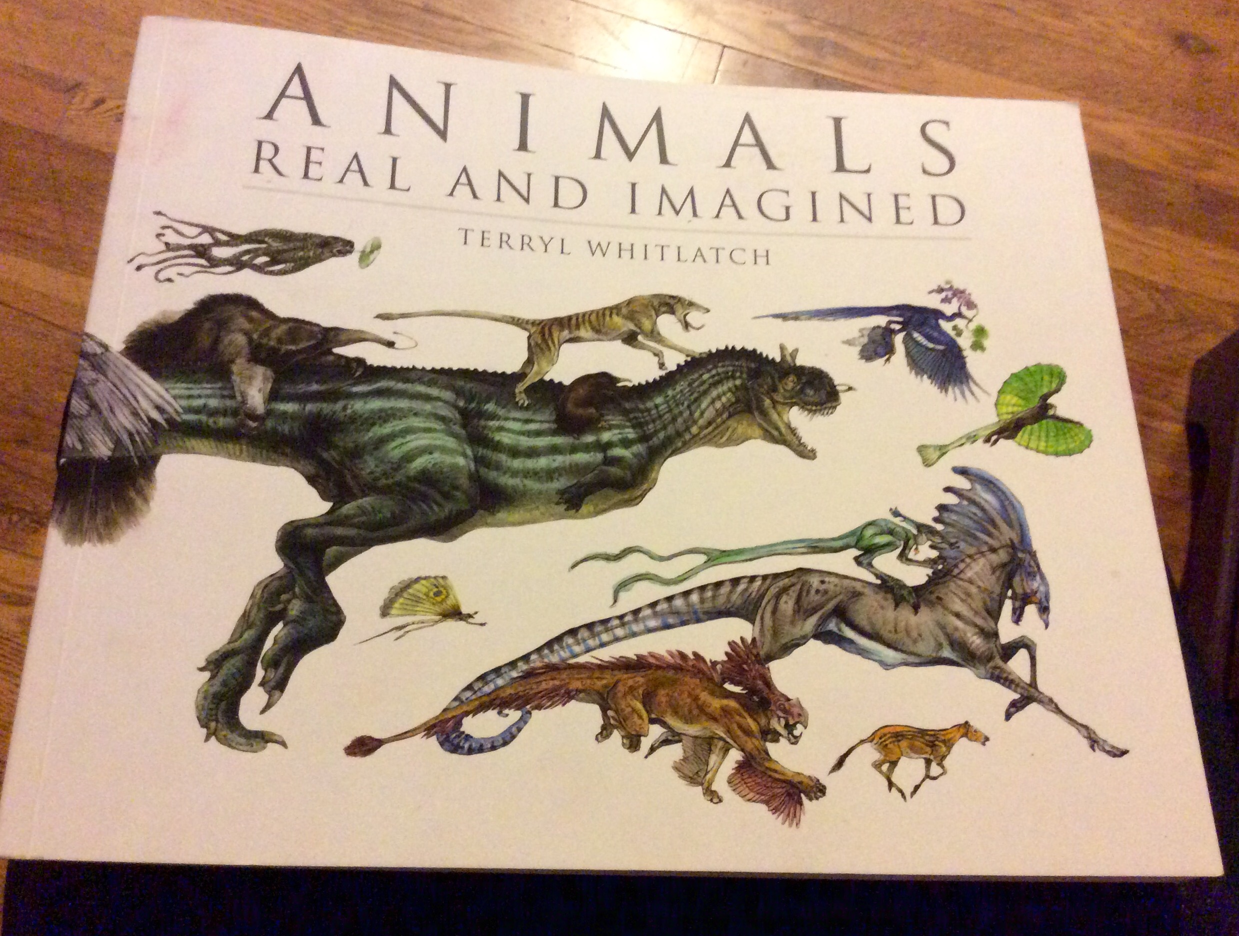It features made up animals. Intentional distortions. I also included words that have nothing to do with the composition, forcing the viewers mind to make a connection that doesn’t seem to be there. By having one animal resting on the back of the other, I think it makes the animals that clearly don’t really exist, look a little more real, forcing the viewer to imagine perhaps the artist had a model he was looking at while drawing. It reminded me that as a child I would draw my own animals and dinosaurs, combining traits of many real animals into my own biologically feasible creations.