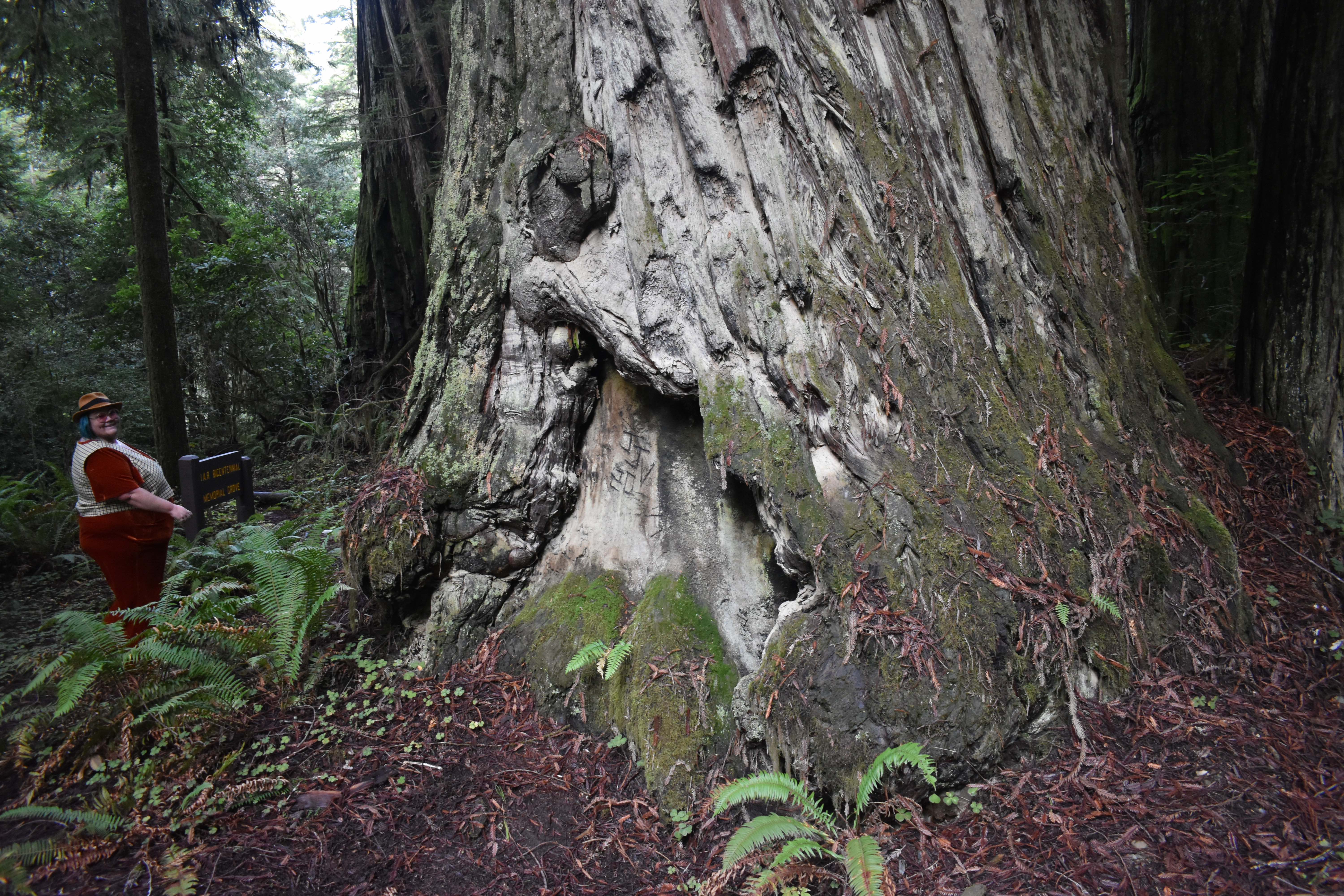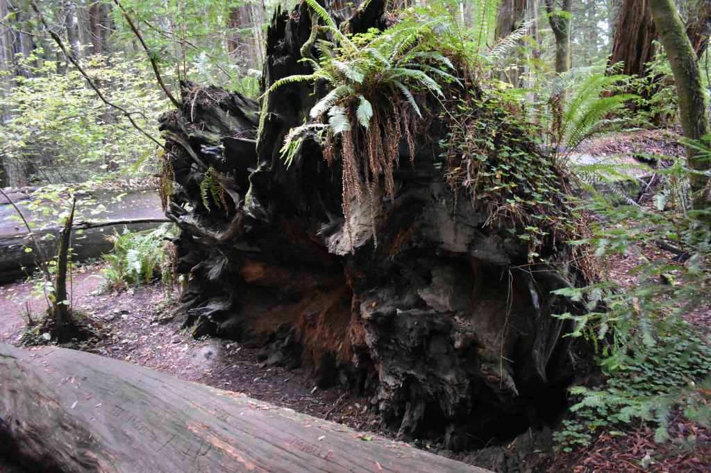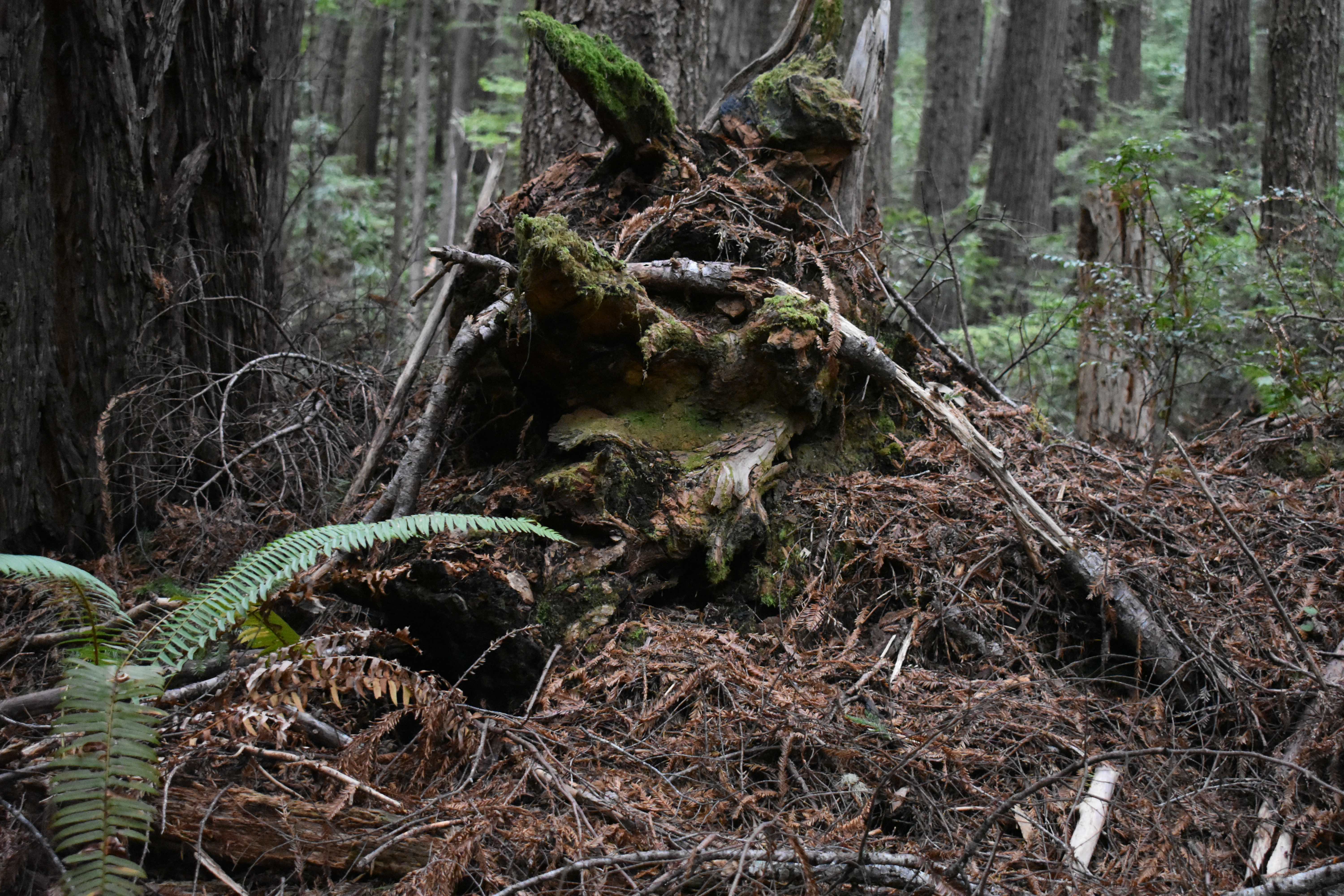 Image description, trees, roots, moss and ferns from the Oregon Redwoods Forest