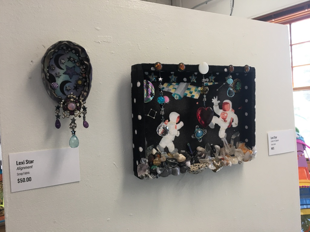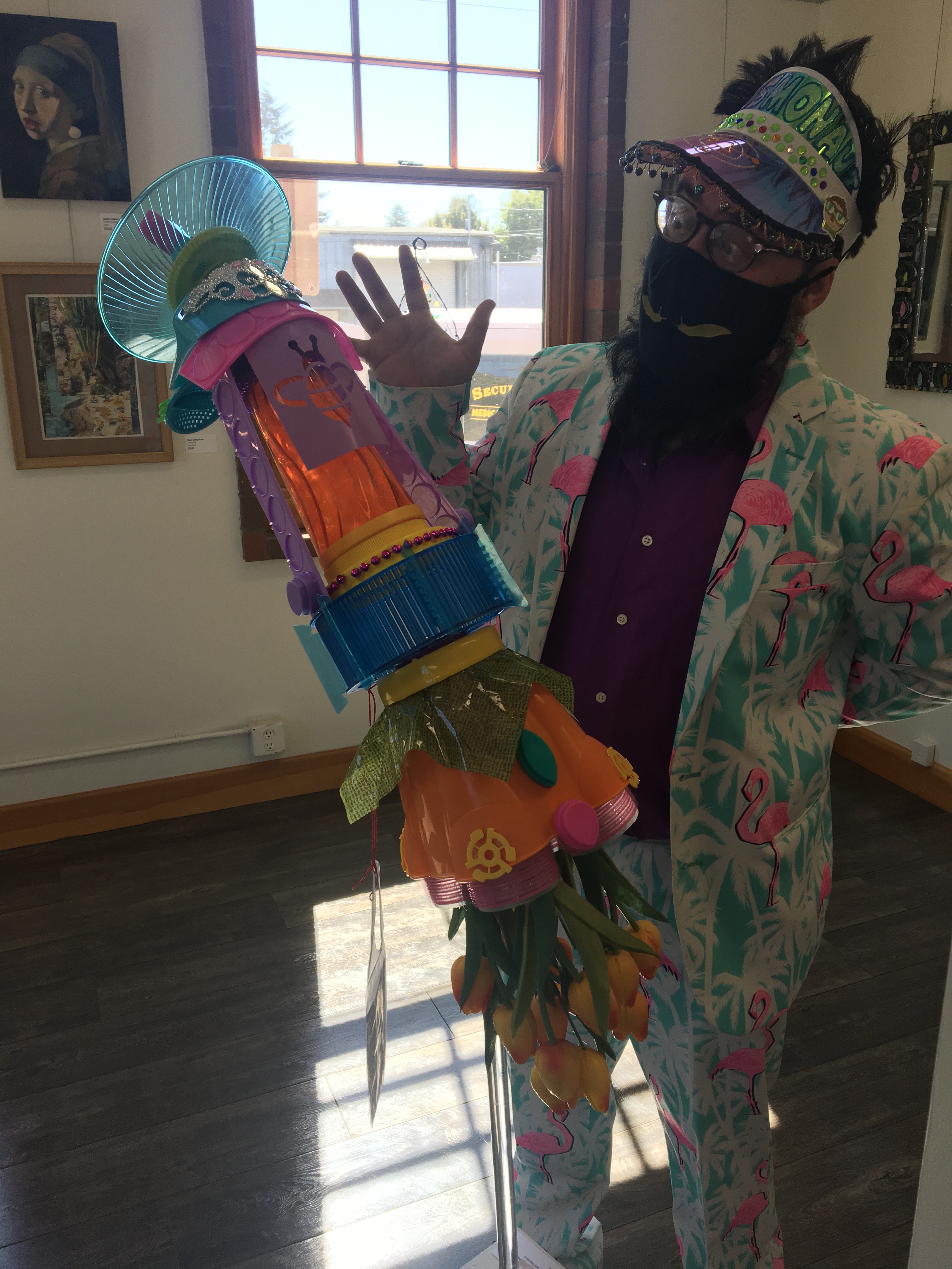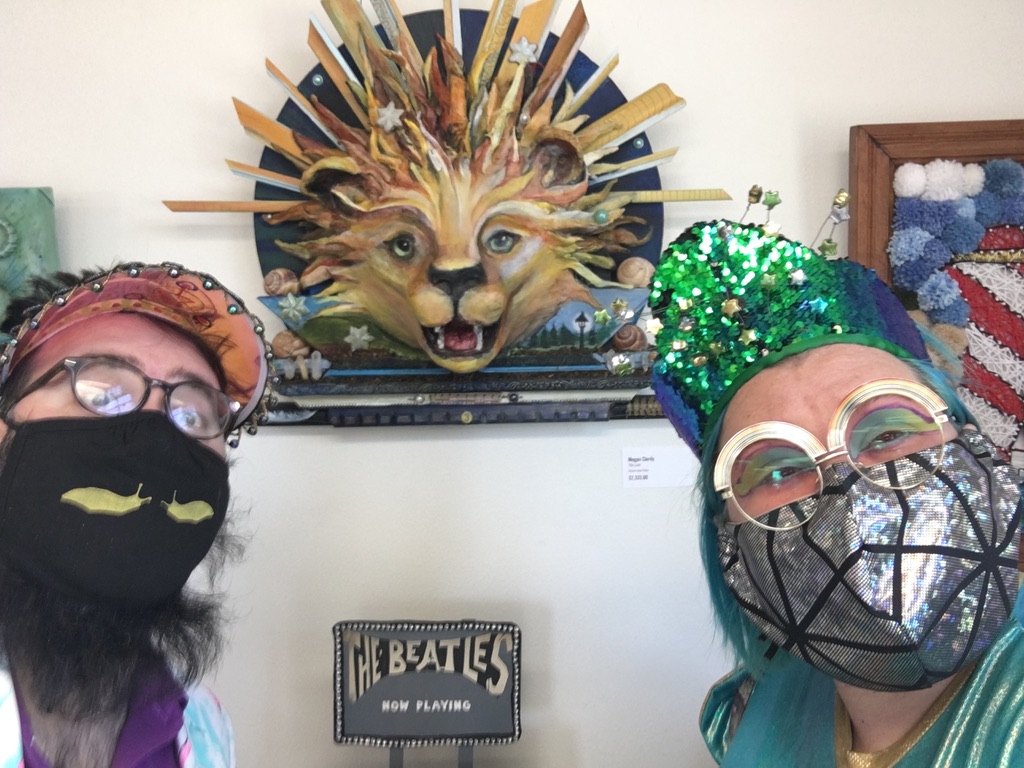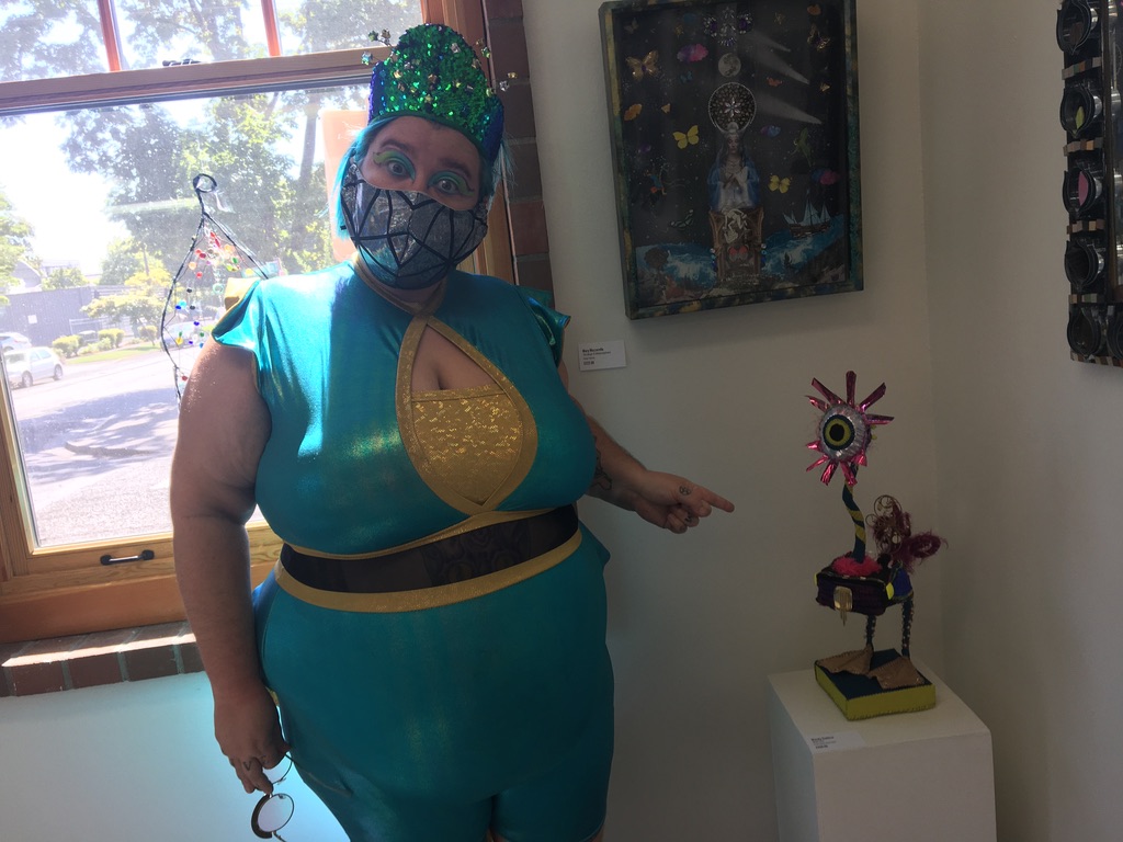 They currently have an art show up of art from recycled materials. Each artist had a challenge to make a piece using some trash temporarily rescued from the landfill by Mecca. https://materials-exchange.org I am always so excited when new work reminds me of the aesthetic and spirit of Dadaism. Here are some photos of me and my partner visiting the gallery. We dressed up because my partner was recently crowned “Slug Queen” in Eugene and the art show asked them to judge a favorite piece. They chose the spaceship made out of recycled plastic. (the first piece here.) I highly recommend you check it out in person and see how detailed and creative these works are in person! Support local artists! #recycledmaterials #dada #dadaism #mixedmedia #collage