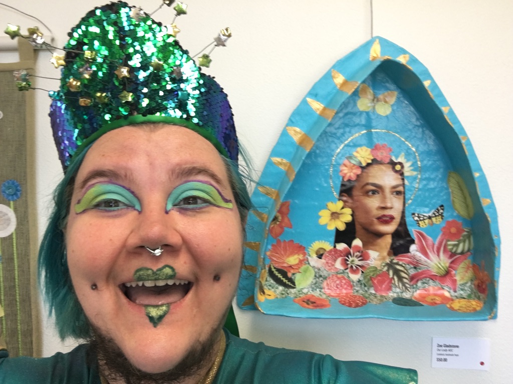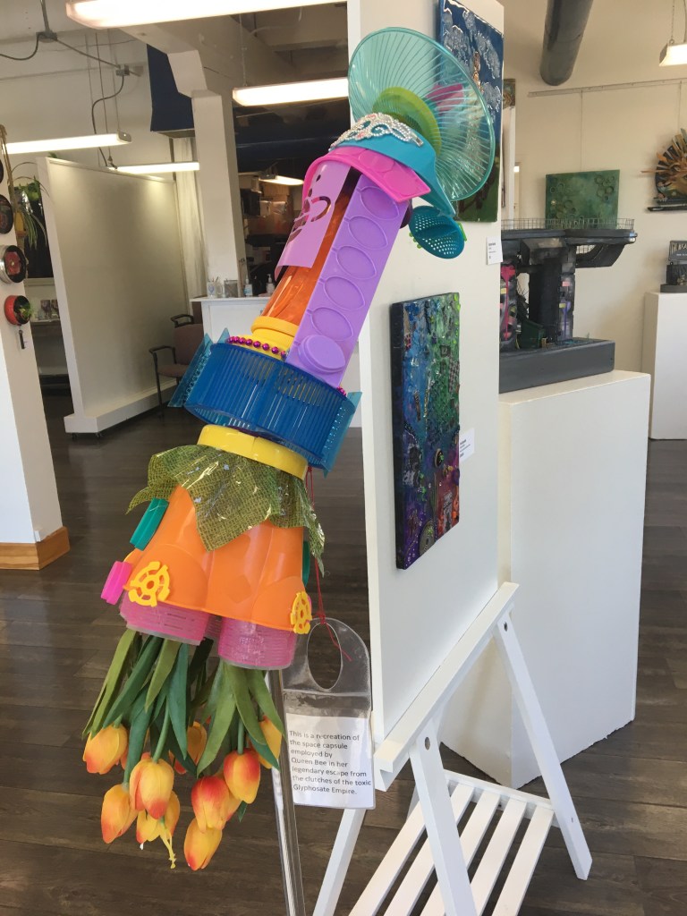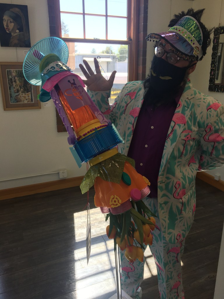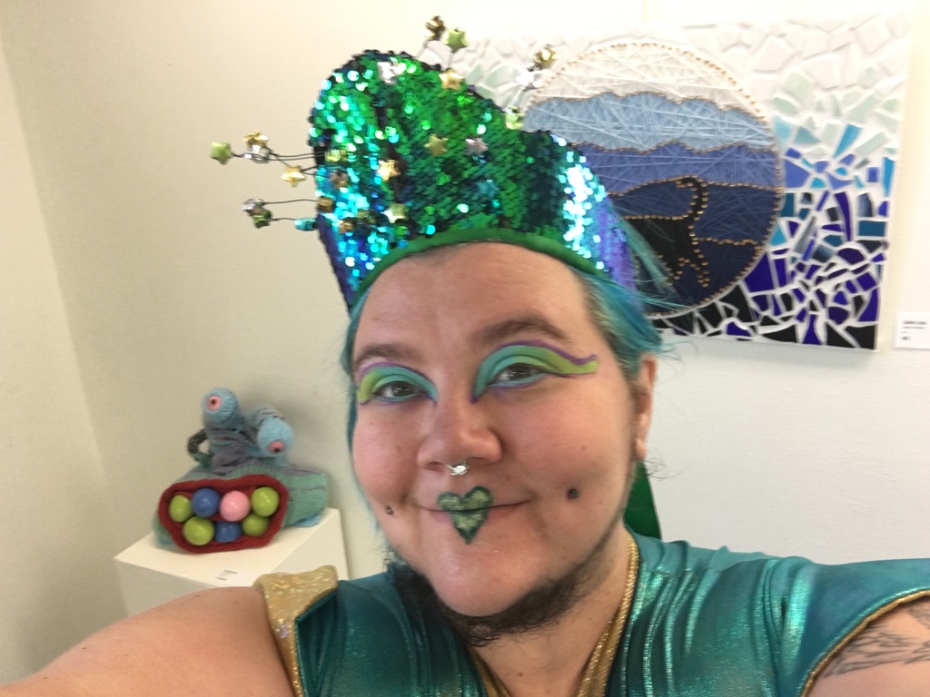 They currently have an art show up of art from recycled materials. Each artist had a challenge to make a piece using some trash temporarily rescued from the landfill by Mecca. https://materials-exchange.org I am always so excited when new work reminds me of the aesthetic and spirit of Dadaism. Here are some photos of me and my partner visiting the gallery. We dressed up because my partner was recently crowned “Slug Queen” in Eugene and the art show asked them to judge a favorite piece. They chose the spaceship made out of recycled plastic. (the first piece here.) I highly recommend you check it out in person and see how detailed and creative these works are in person! Support local artists! #recycledmaterials #dada #dadaism #mixedmedia #collage