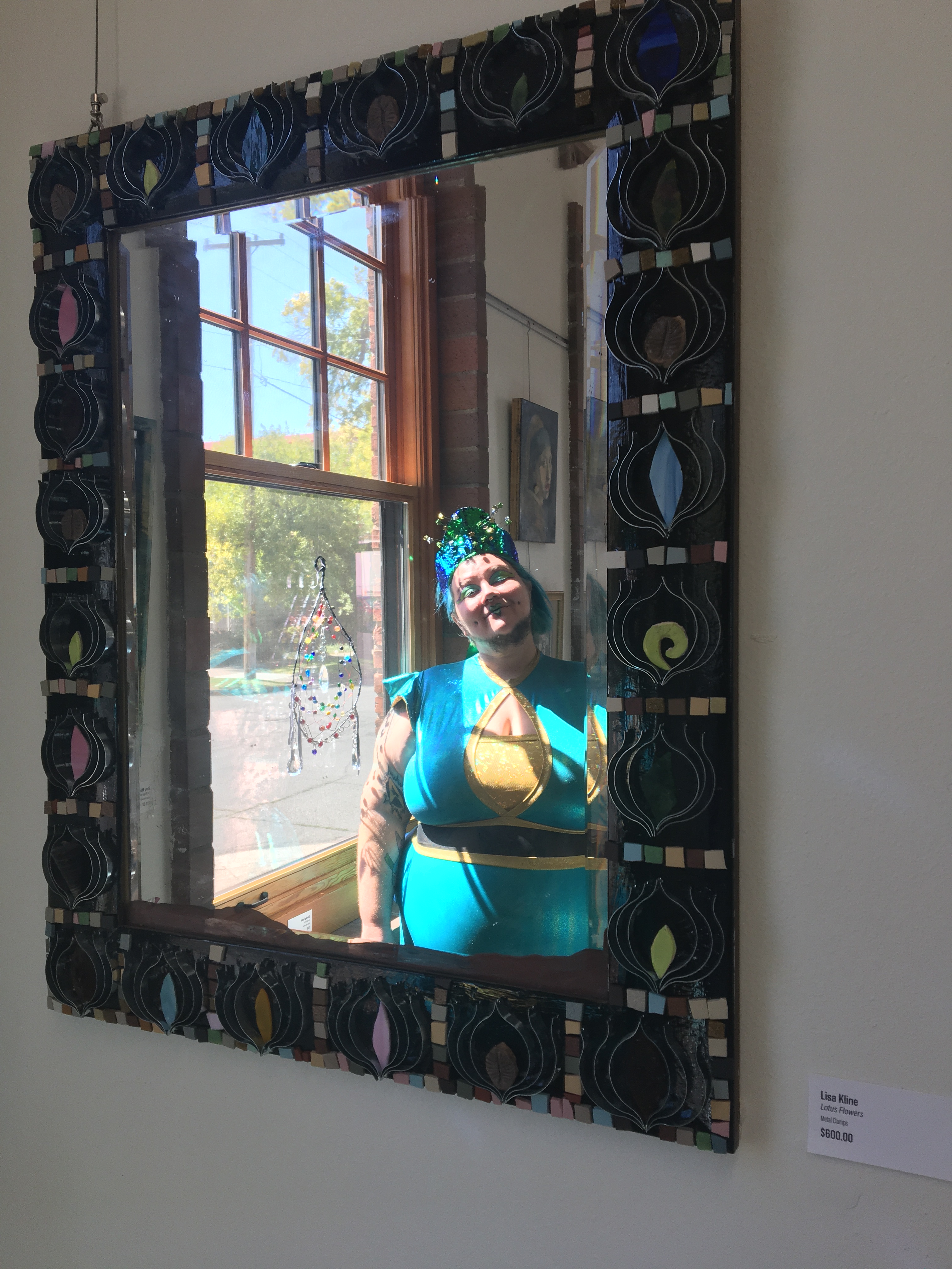 This mirror had vulva sculptures all around the border, like a miniature Judy Chicago dinner party!