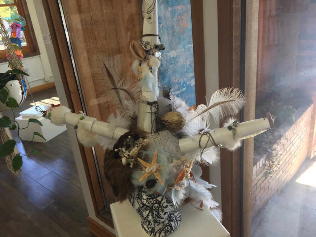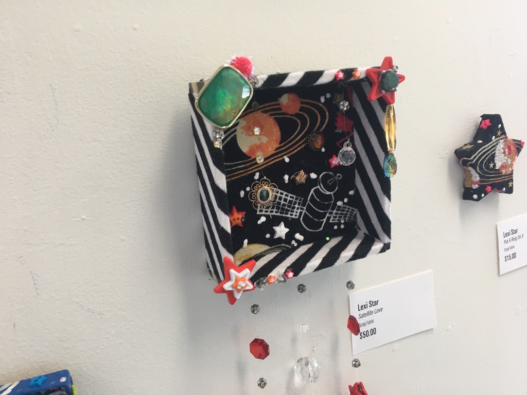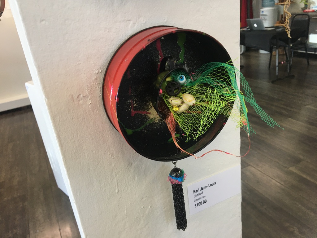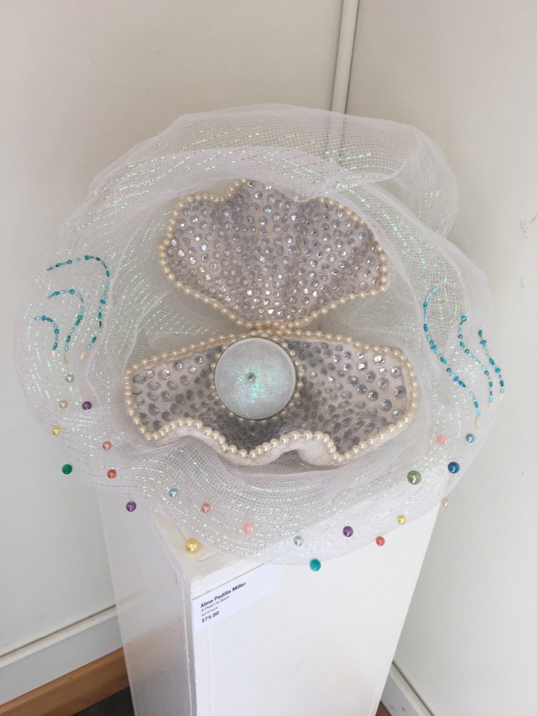 This gorgeous piece was so intricate, textured and layered, these barnacle like shapes are made from cut up plastic easter eggs covered by yarn and thread. artist is Fiona McAulife