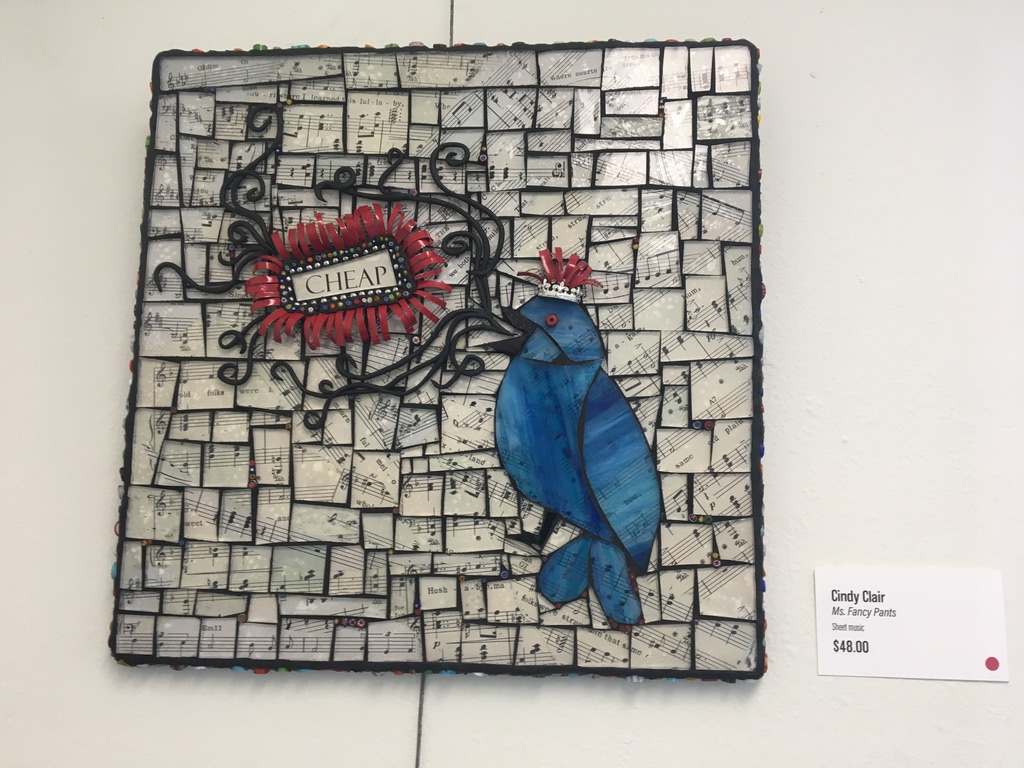 This piece was one of my favorites, the discolored sheet music behind stained glass was very much like the collage of the dada aesthetic from the 1920s.