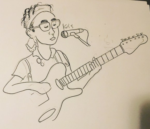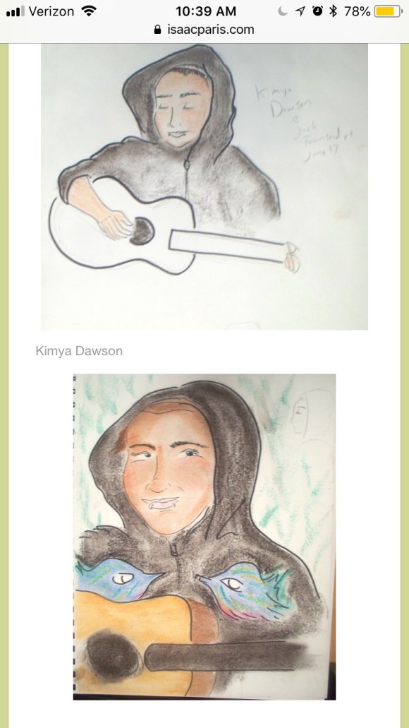 I drew Kimya a few times before. Here are two I drew when she played an outdoor show in Fairbanks in the rain.