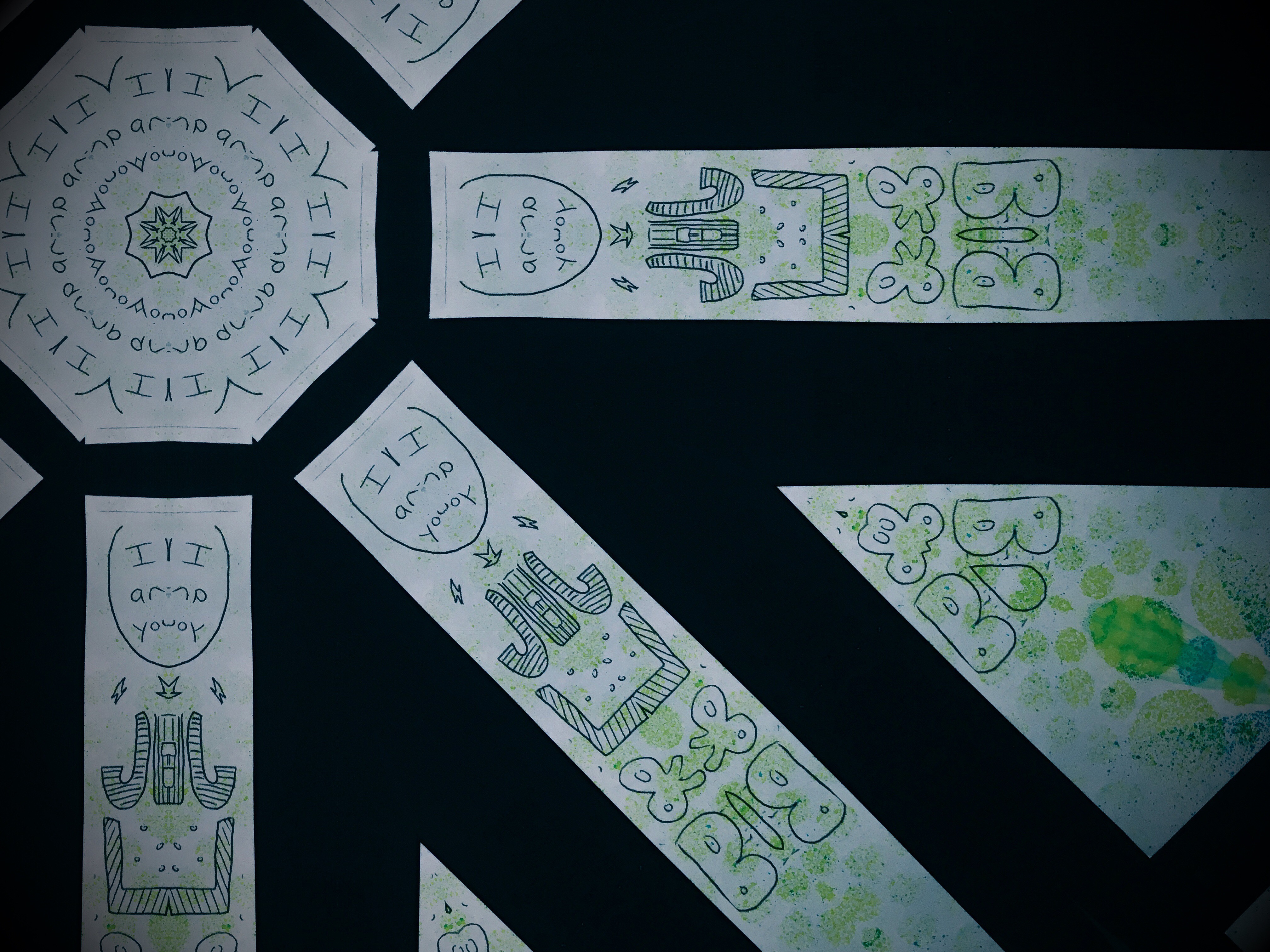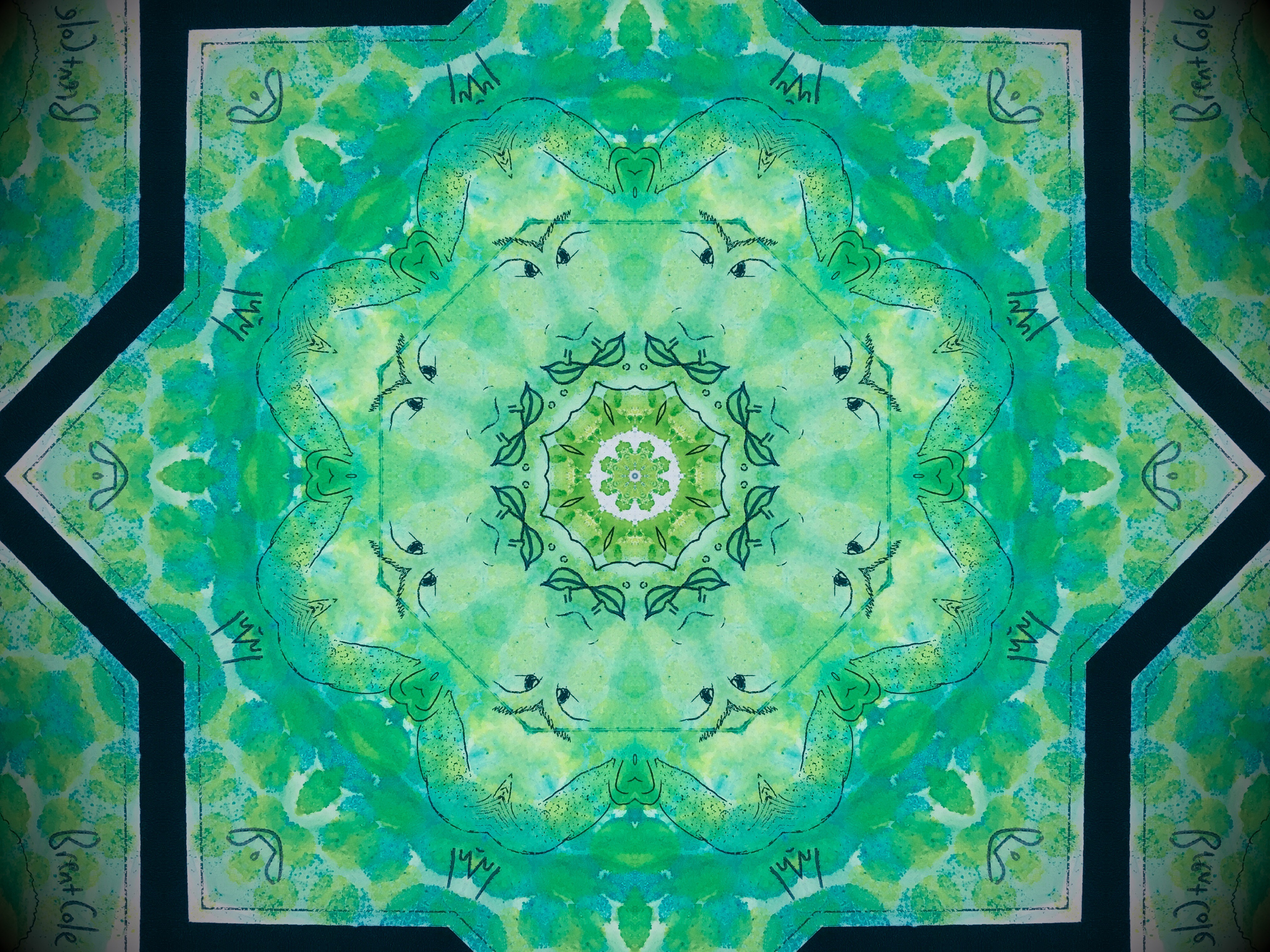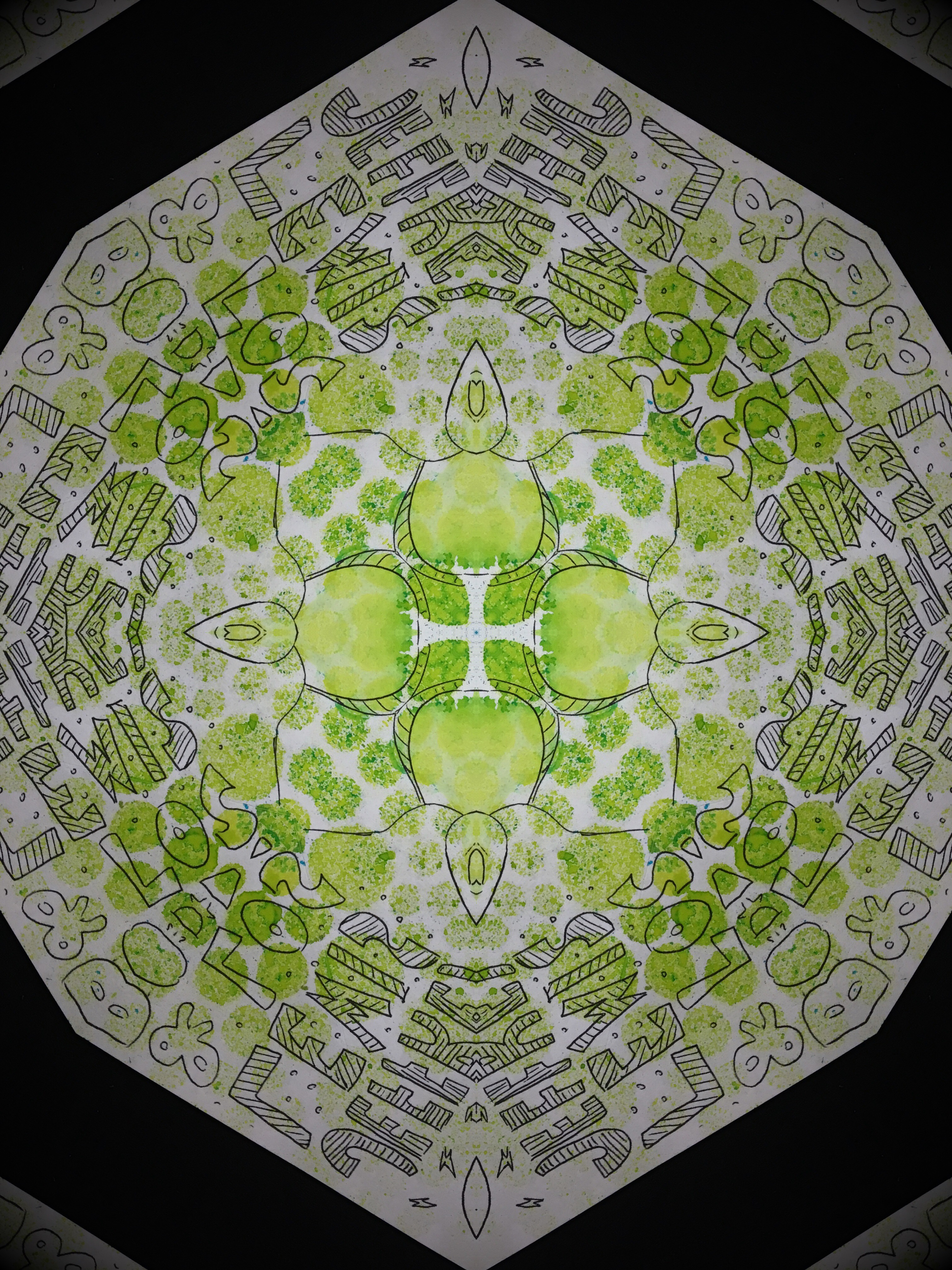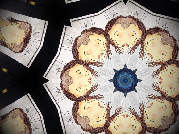 Just as a bonus here are some kaleidoscopes based on the text at the bottom, which was very fun to draw.