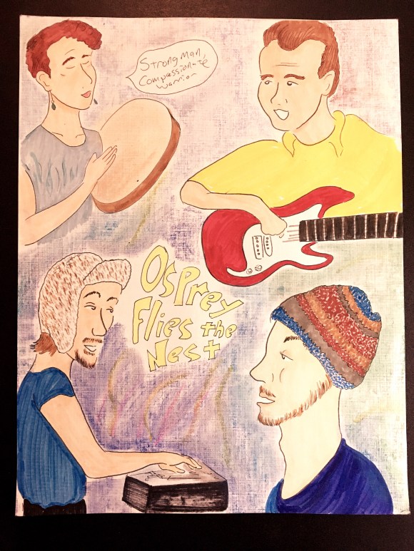 This Eugene band plays charming folk rock with real touching lyrics about yoga, community, friendship and compassion! Some songs were just Osprey and their drum, others were a full band with guitar bass and keys. They aren’t sure about their name yet, so it might change. You can hear some of the songs here.