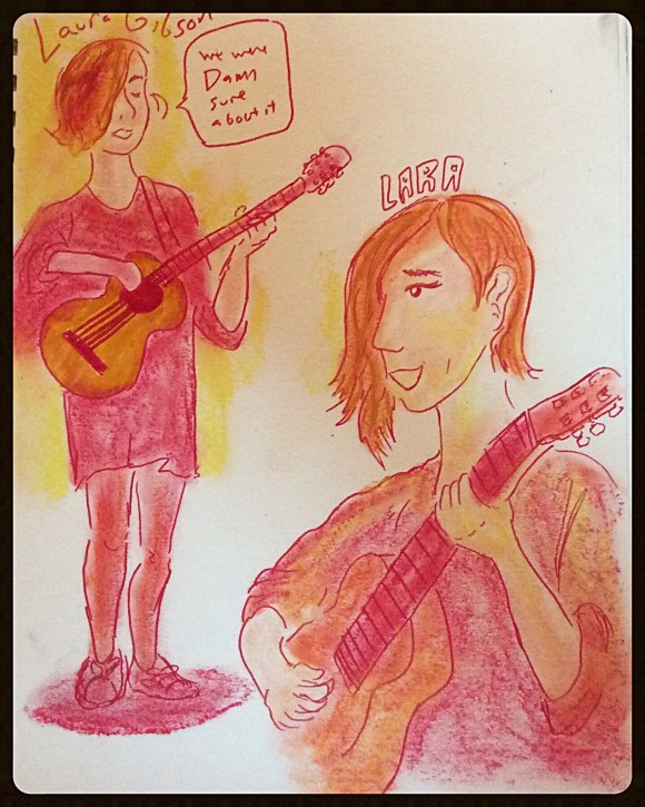 This gentleman really knows his way around a fretboard. He plays gypsy jazz and brings in some delta blues now and again. With Sarah as his accompanist, they played some fantastic jazz and instrumental Beatles songs at the local drink and draw at Sam Bonds Brewing. Listen to his fast, adroit, sensual sting massage and rhythm alchemy here!