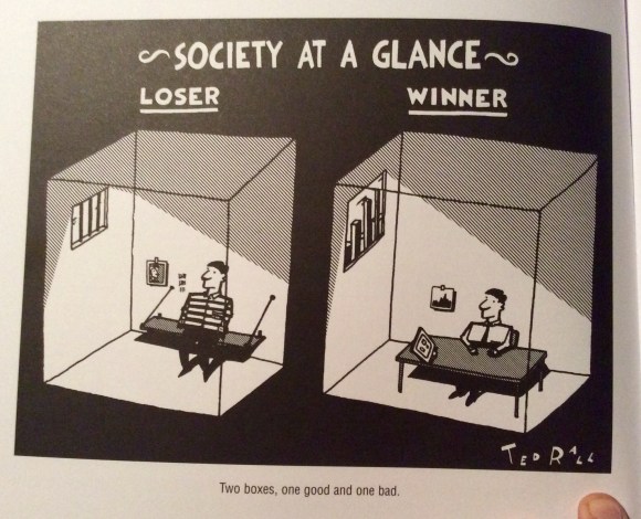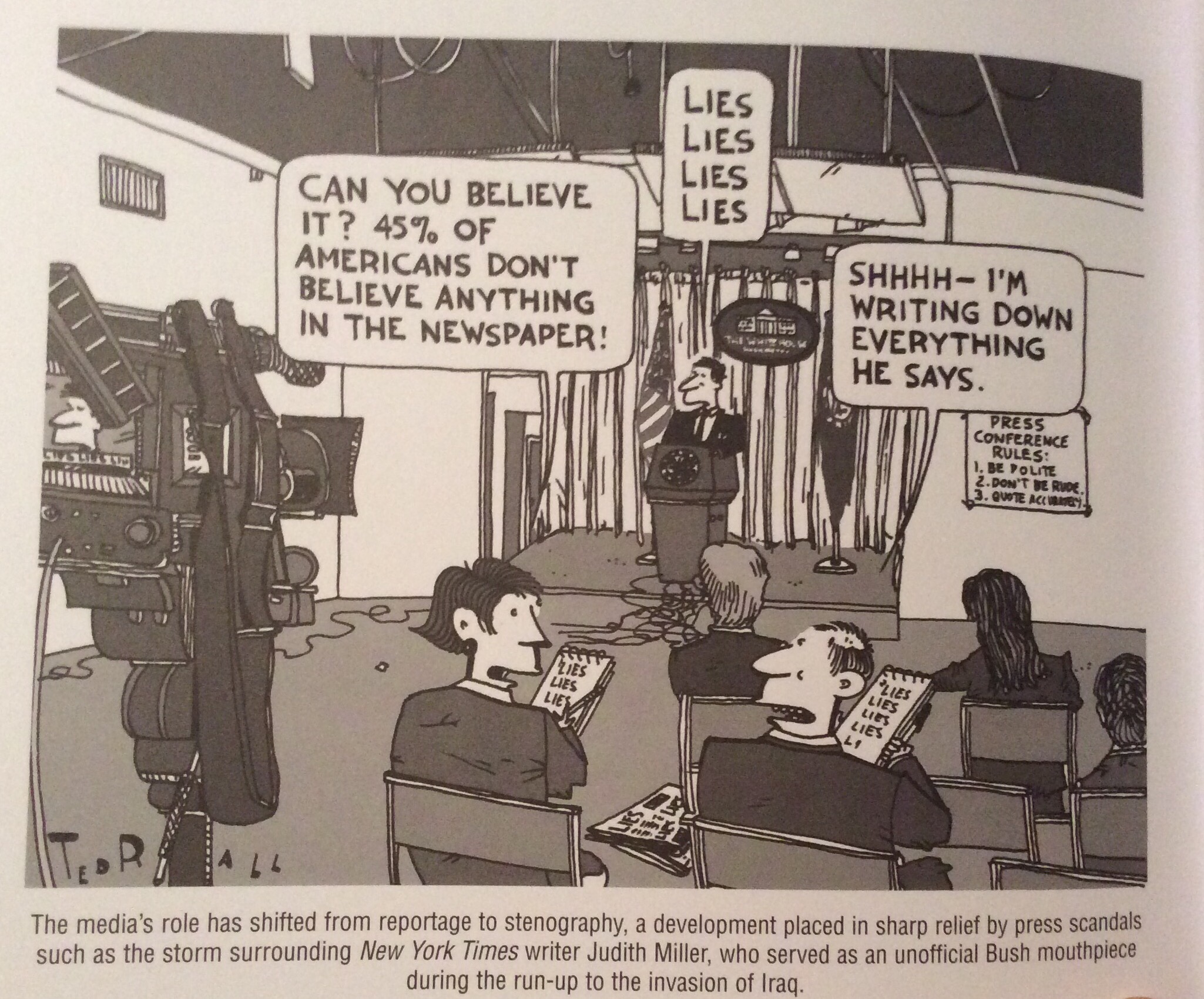 Rush, it takes a lot of hard work to be published in many newspapers! No one listens to imbeciles, well, except for you. Some of ralls critics say, in addition to being hurtful, mean spirited and rude, he CANT draw. I disagree? His art is economical, utilizes stereotypes and sometimes, like here, shows detail and understanding of perspective. Sure, his heads are generic and Picasso-esque, but the communicate effectively a message, and that’s what s important in cartoons.
