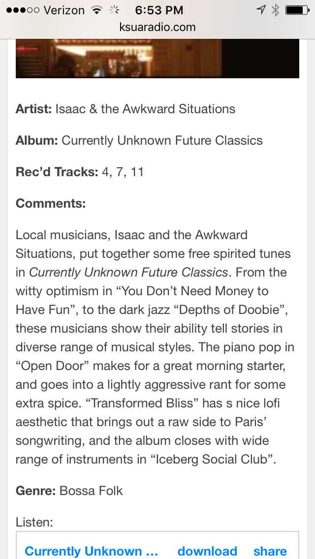 Isaac and the Awkward Situations Currently Unknown Future Classics (2013)