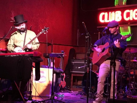He has provided live accompaniment to Trek Theater’s production of “The Game.” His songs have been covered by Rebecca Menzia and Laila O’Sullivan, Liberty Cabbage and Electric Tape. His original music was used in “Caligari Alaska” at UAF Theatre, and in movies by Tyson Hansen and Paula Dabaach. His song “Damn you, Damn you, Damn you” was in the 2010 Valentines Burlesque show from Naked Stage Production. His song “The Ballad of Maggie McGris” was in the 2009 Lonely Hearts Burlesque. His song “Drunk and Seduced” was a part of the 2007 production of Seward’s Follies “Fleur de Mal” Burlesque show. His song “Annabelle” was selected for the 2007 Fairbanks music compilation album “Stranger than the City.” His song “Brilliance of the Auora Borealis” was selected by NPR’s “All Songs Considered” and was available at their website. He has played as a guest on albums for The Scurvies, Esther Golton, and The Moon Knights.