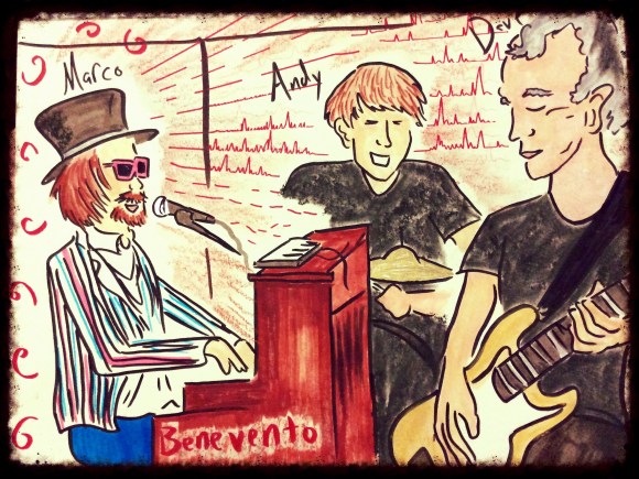 Marco Benevento played his droney shimmering, danceable instrumental jam band pop at the Axe and Fiddle last night and it was a magical show! His band was awesome. That drummer (Andy Borger) was amazing. BAss player Dave Dreiwitz was on his game too laying down the fuzz. I don’t know what to say about the show other than that I loved it.