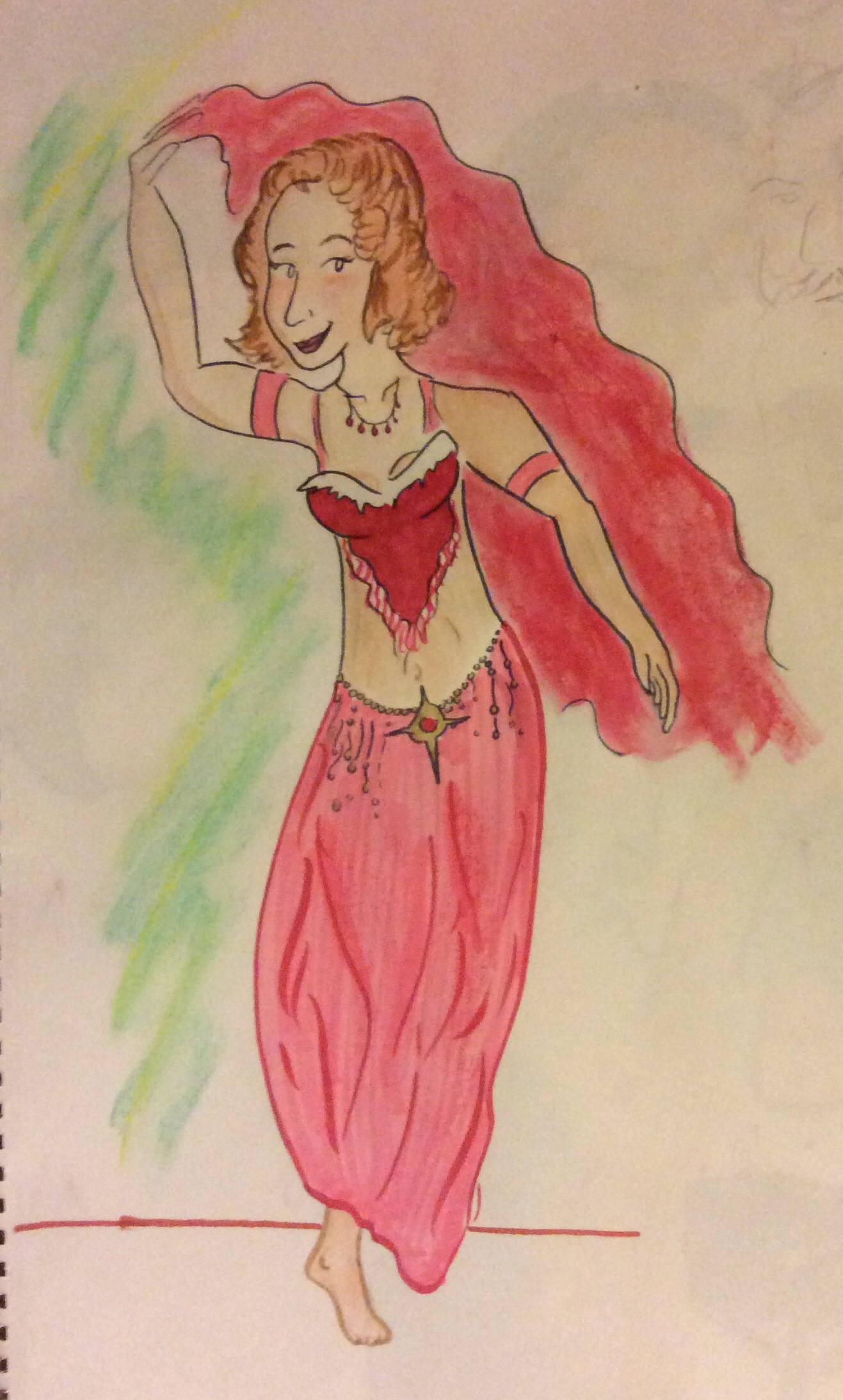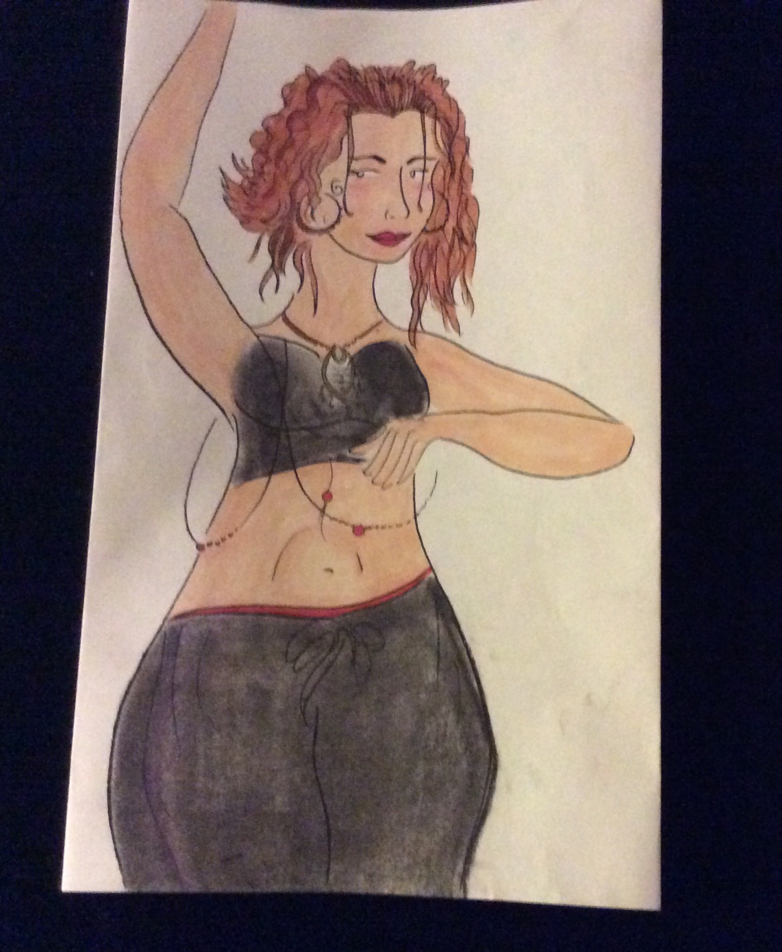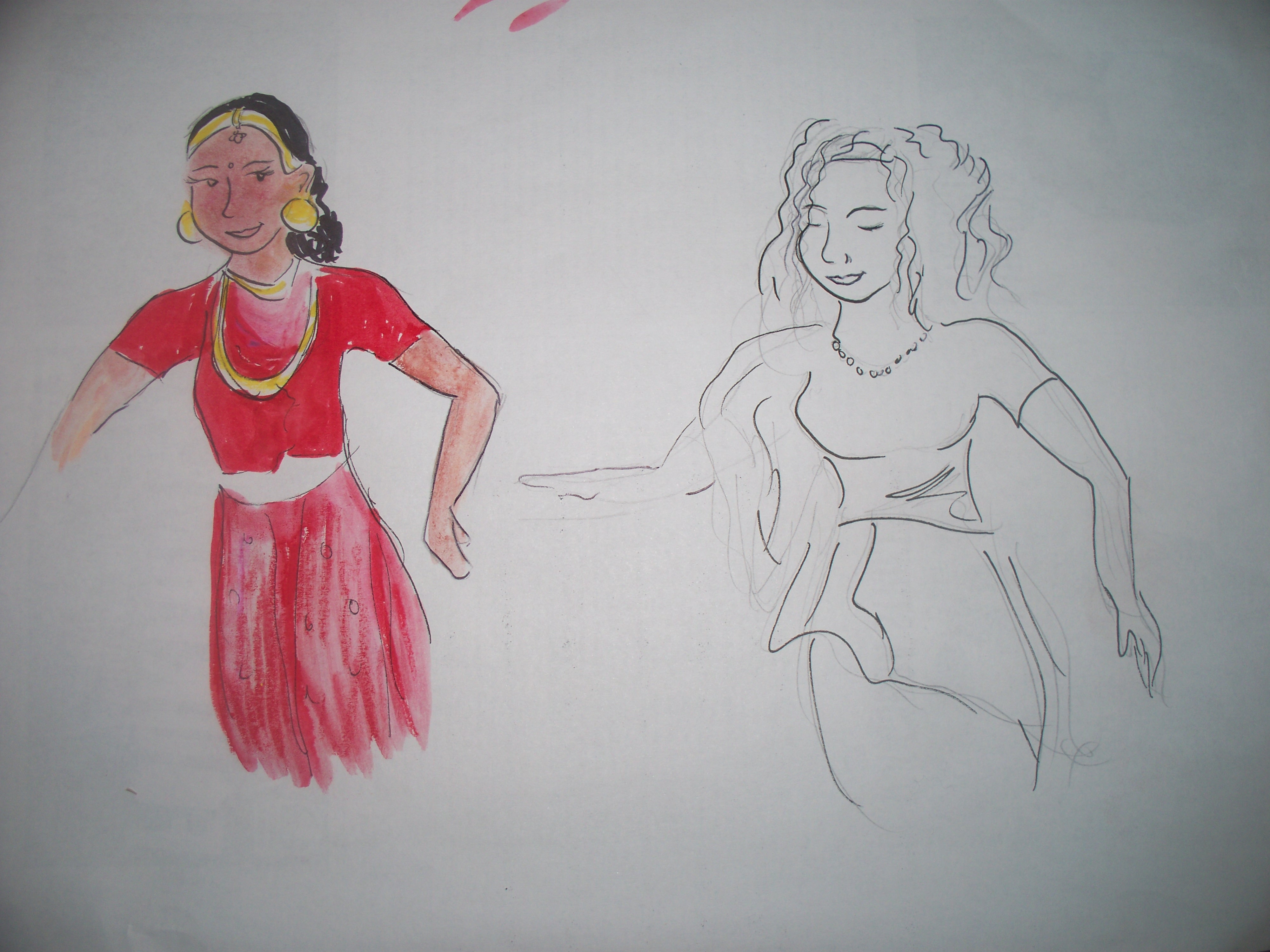 Serena had several dance performances with her troupe Fusion Fascination. (Michele was very serious and had a stern face as she danced, but Kaity had a big smile.) I took photos to reference for details in my drawing.
