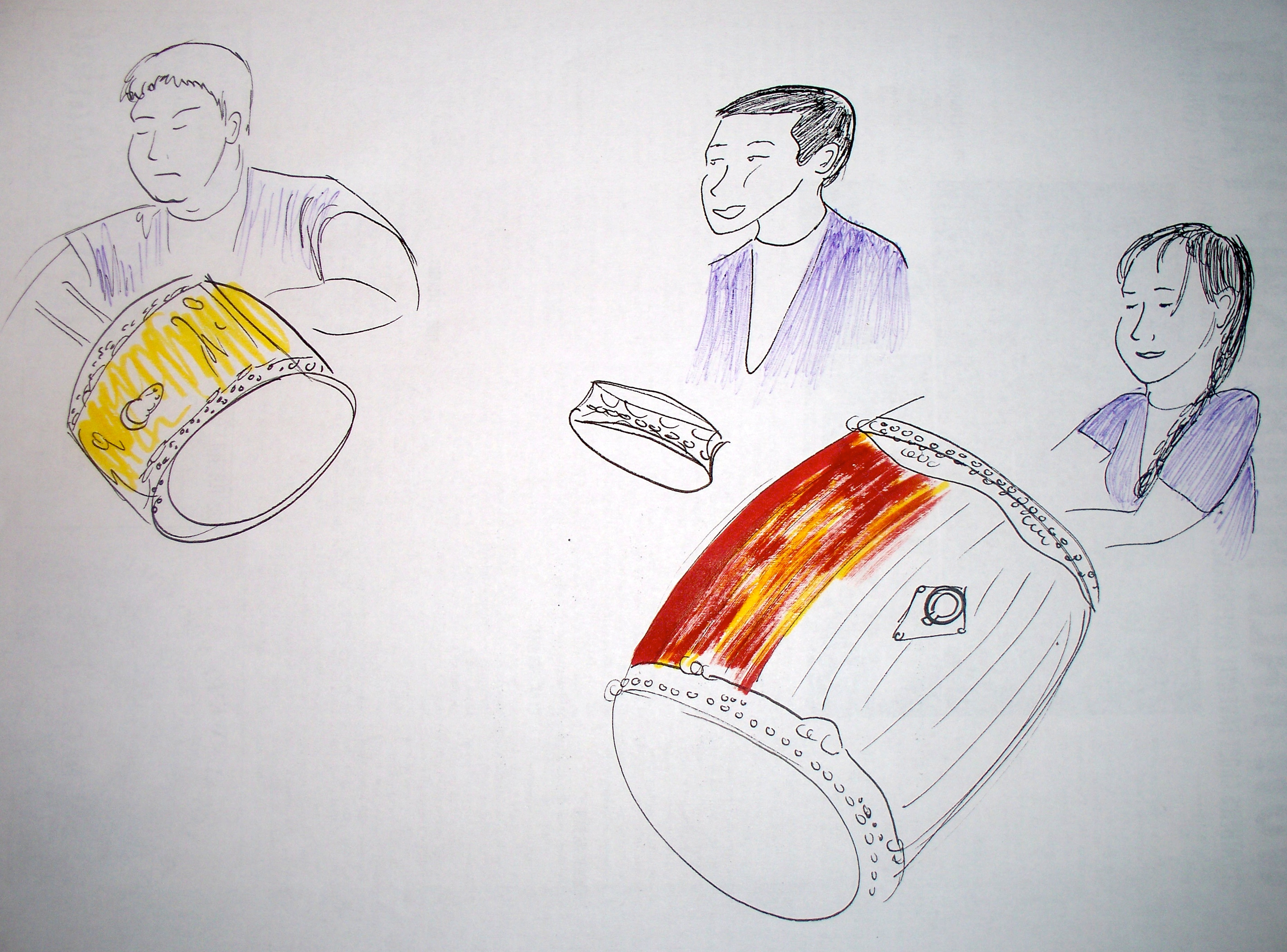 Here are a few more miscellaneous drawings, I didn’t finish coloring all of them. The Taiko drums are always exciting!
