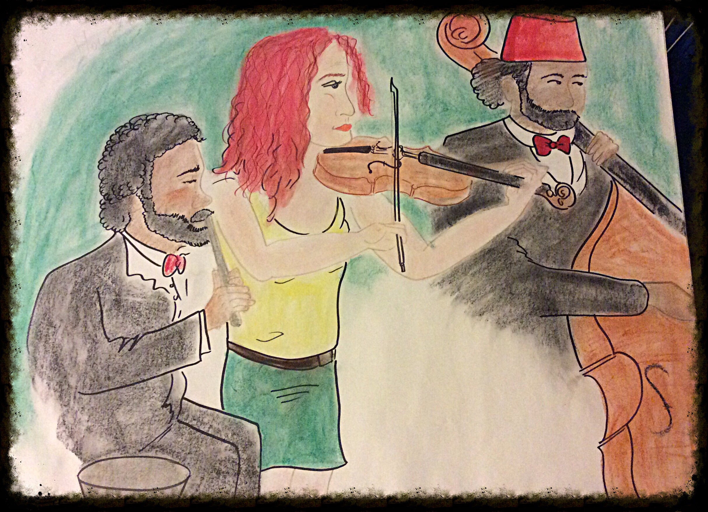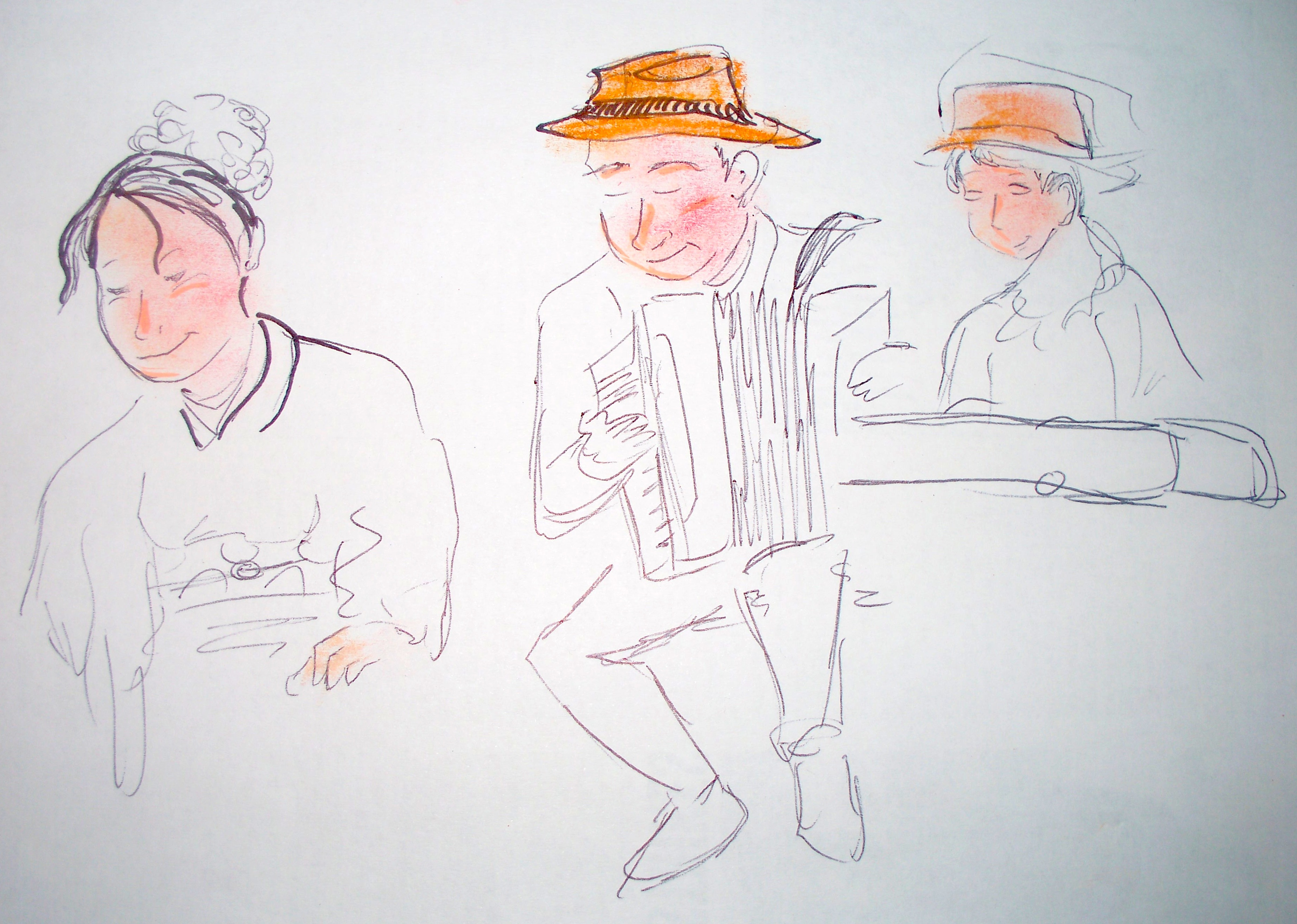 I was able to make two drawings during their 2 hour set. They play traditional Balkan music.