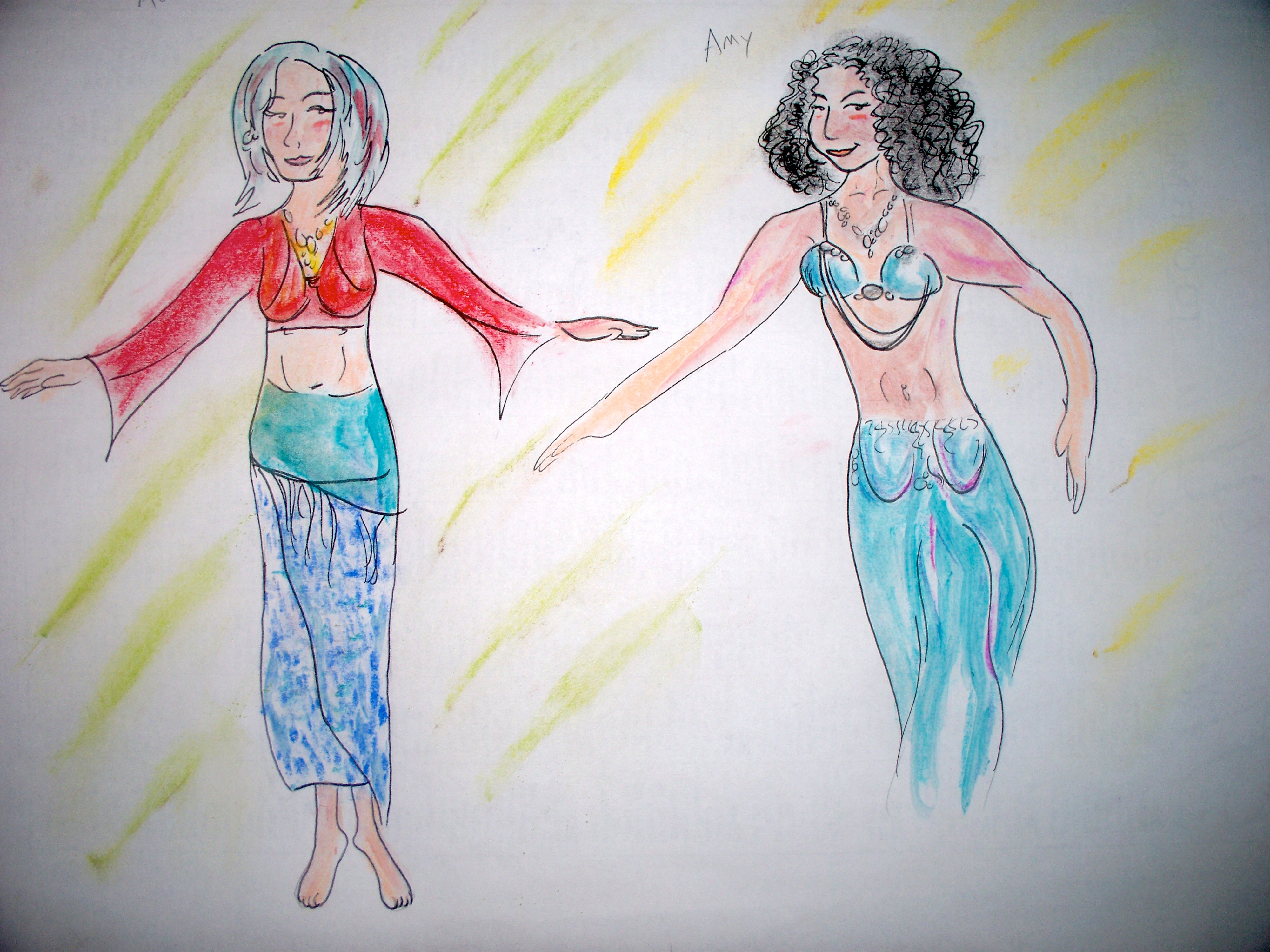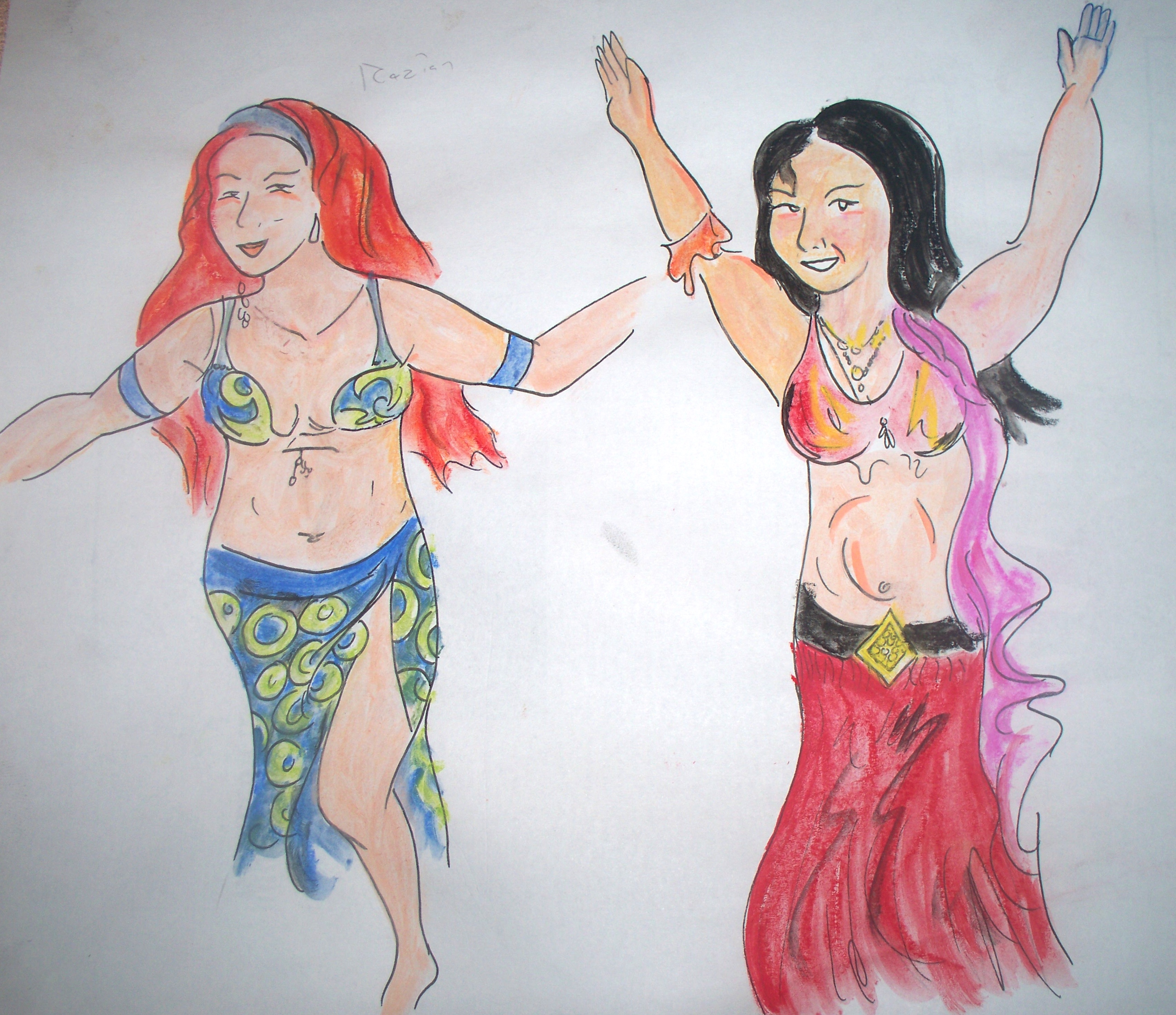 These are Belly Dancers who sometimes dance at MEDGE nights at Cozmic Pizza.