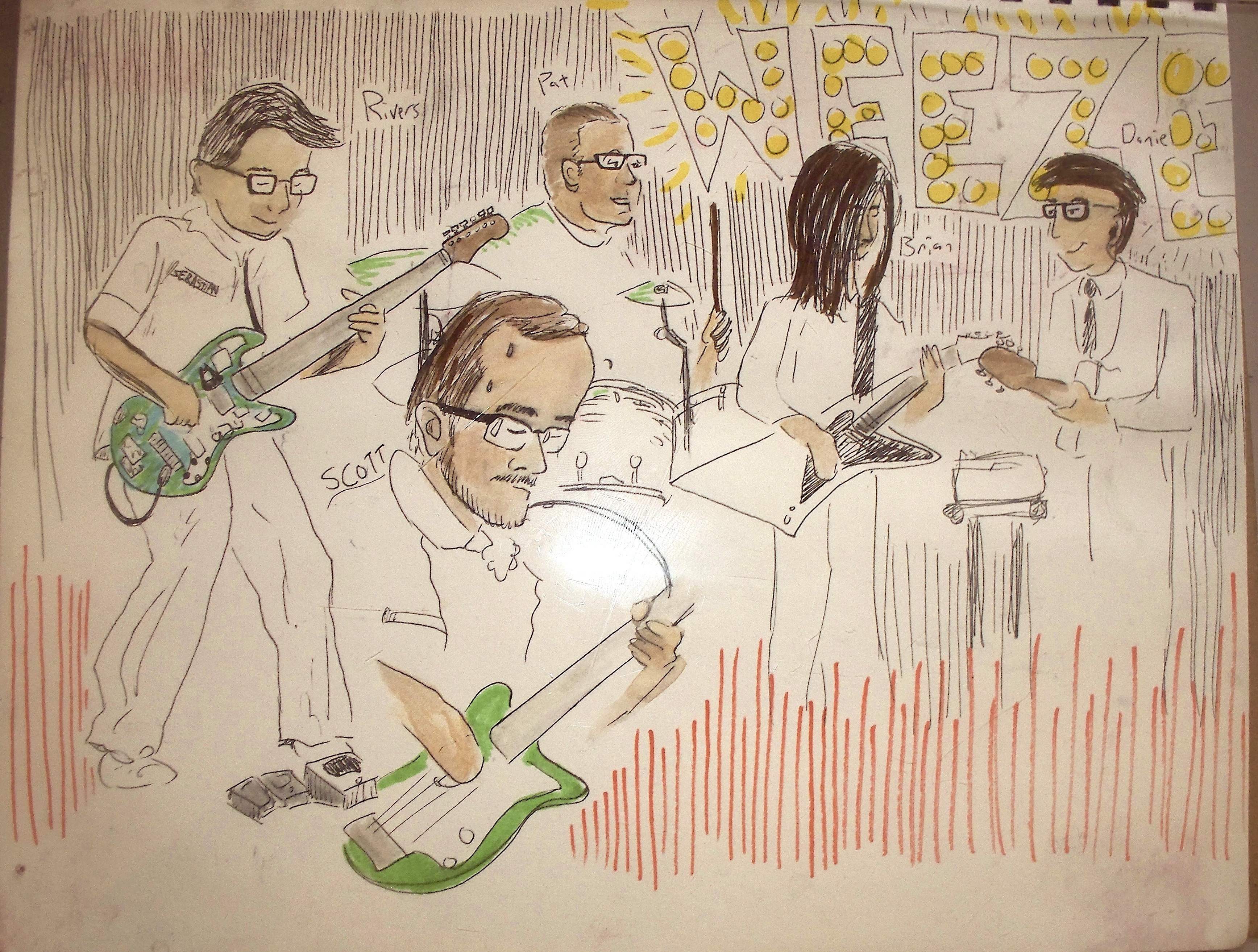 It was awesome to see childhood heroes Weezer play in Portland. They played a few old gems, including “she’s all I got and I don’t want to be alone!” Great show, the lights were fun, the choir and extra guest performers kept it mixed up and exciting! Weee! oh and I painted with coffee because that’s what was lying around.