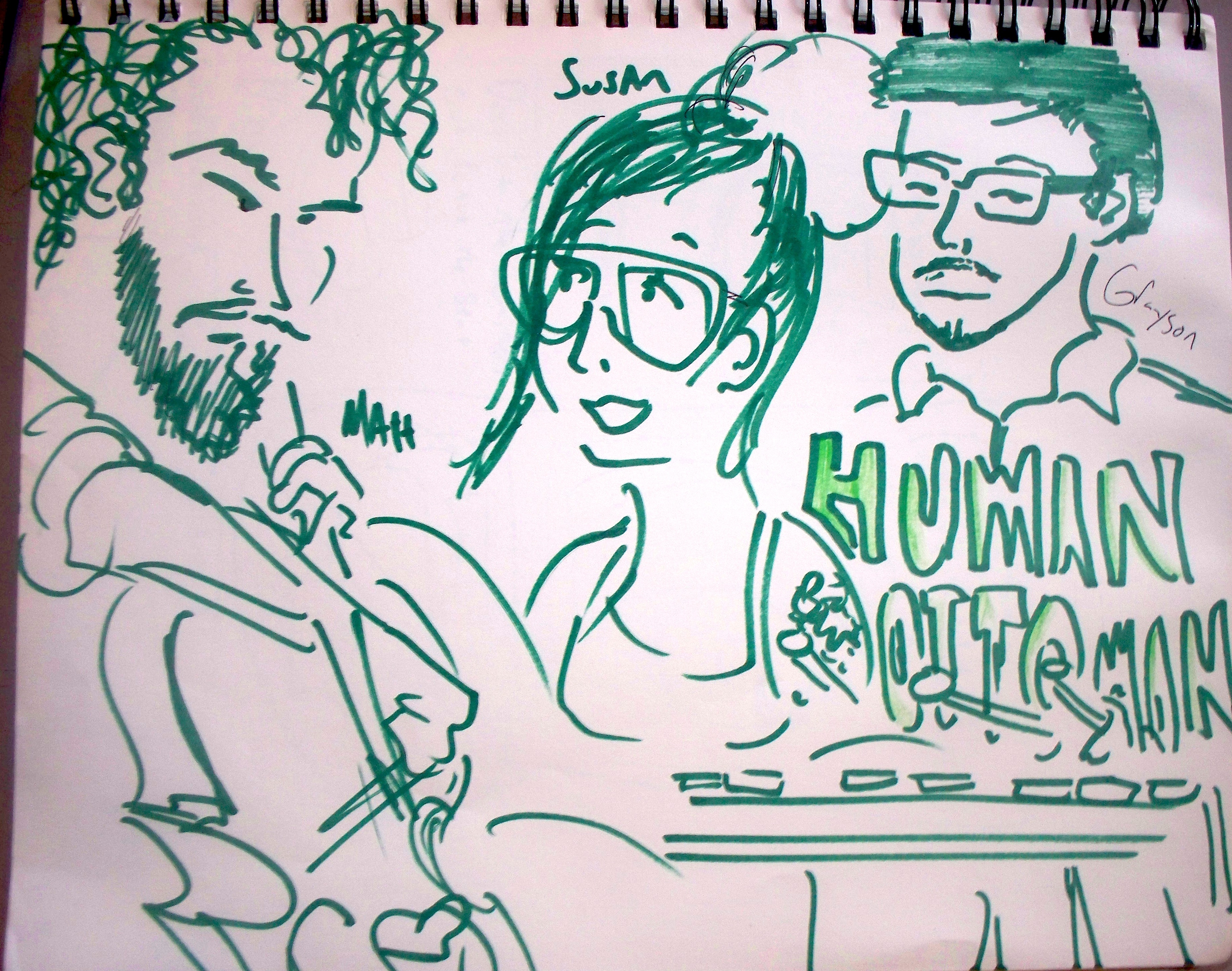 Human Ottoman play weird beautiful ethereal math rock. They call it polyrhythmic world metal. They say they are influenced by Brazilian rhythms, Fela Kuri, Mr. Bungle and they sing in Spanish and English. Susan loves Dave King from the Bad Plus. Matt loves folk music including Bob Dylan. They were all U of O music students.