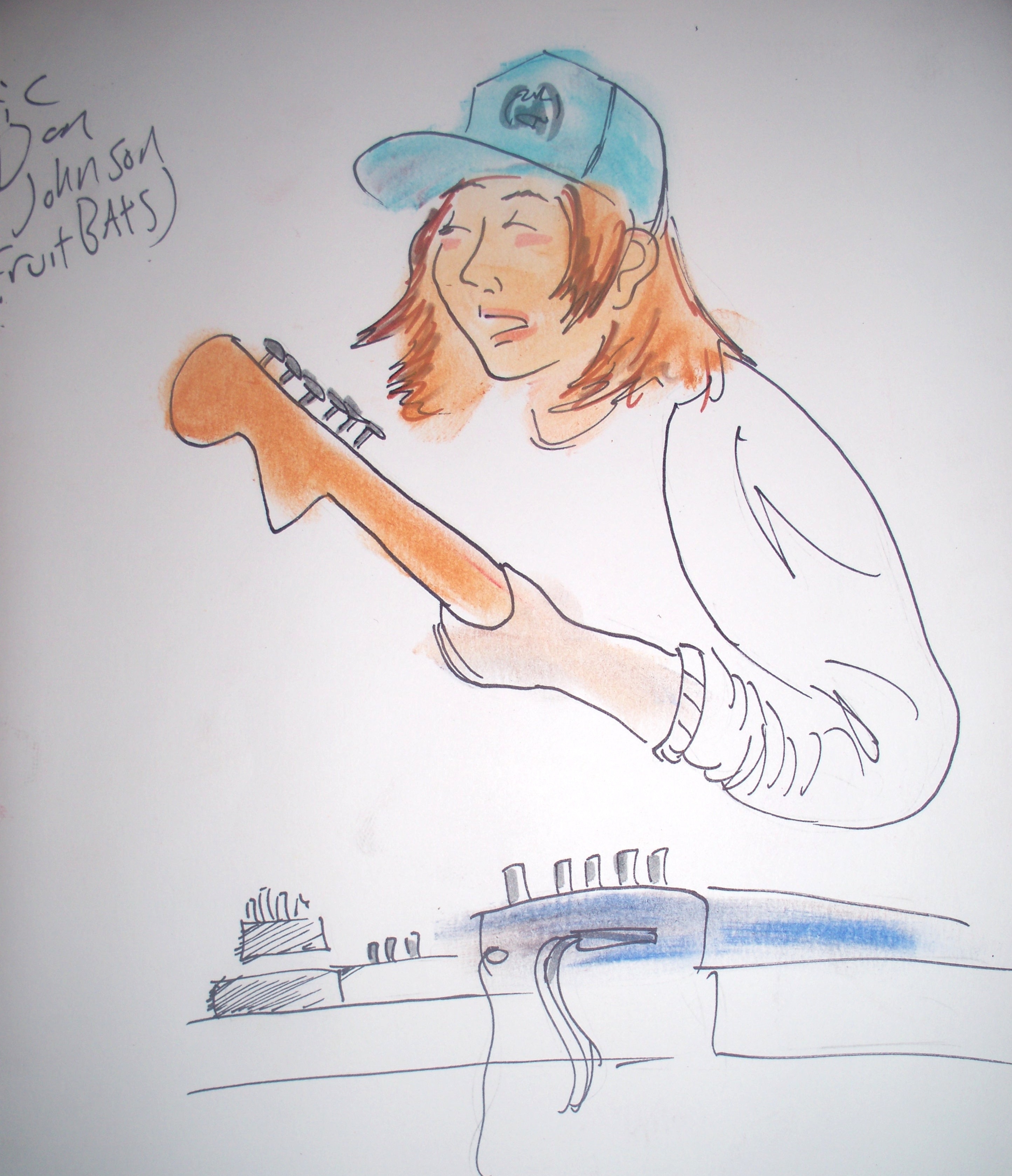 One of the most delightful, talented bands I’ve seen in Oregon: Three For Silver. Some compare them to Tom Waits, I think they sound a bit like Dark Dark Dark and the Squirrel Nut Zippers! I do like to draw accordions. Andrew played clarinet at this show and played on their album. They said they were friends with another band I have drawn, the G String Orchestra.