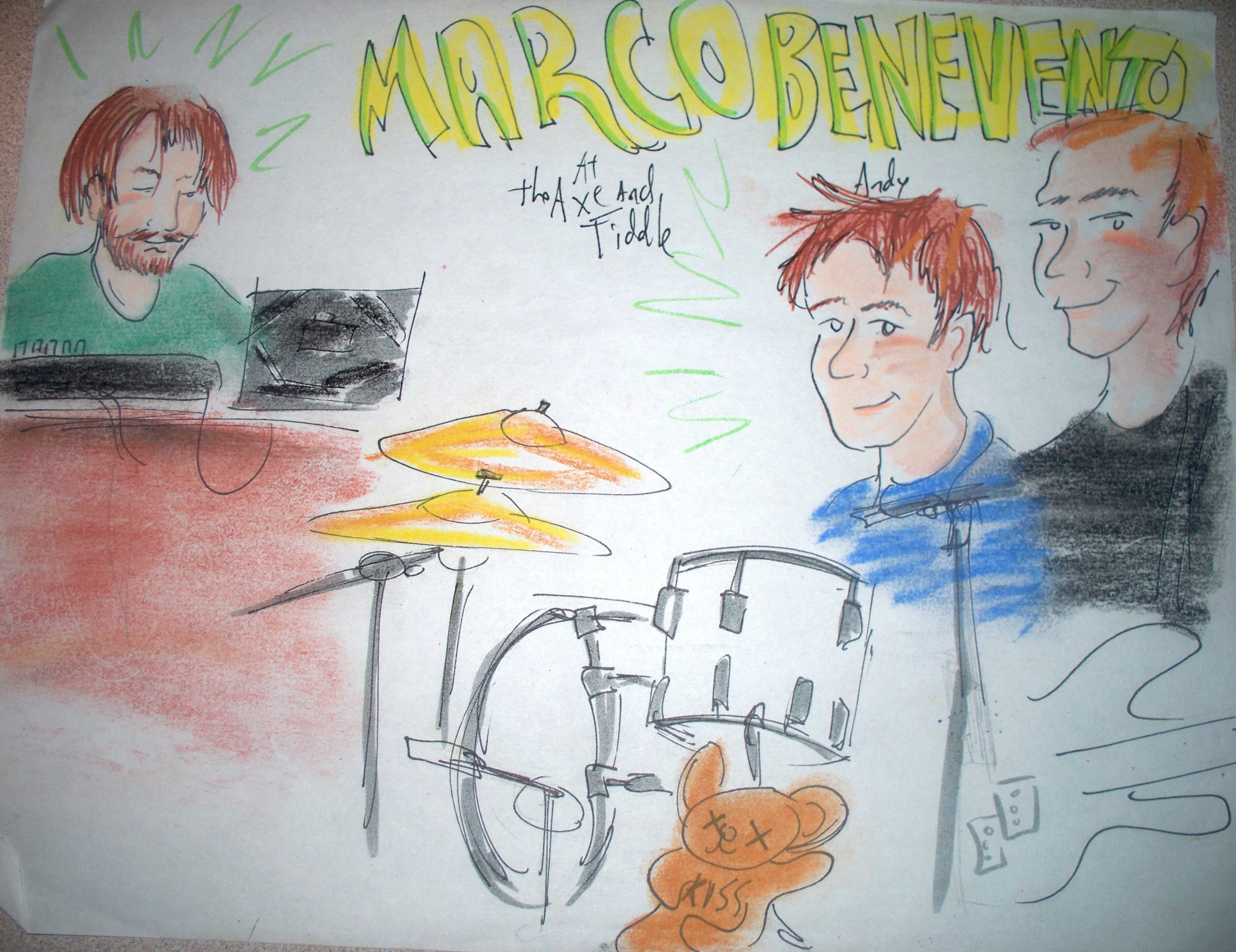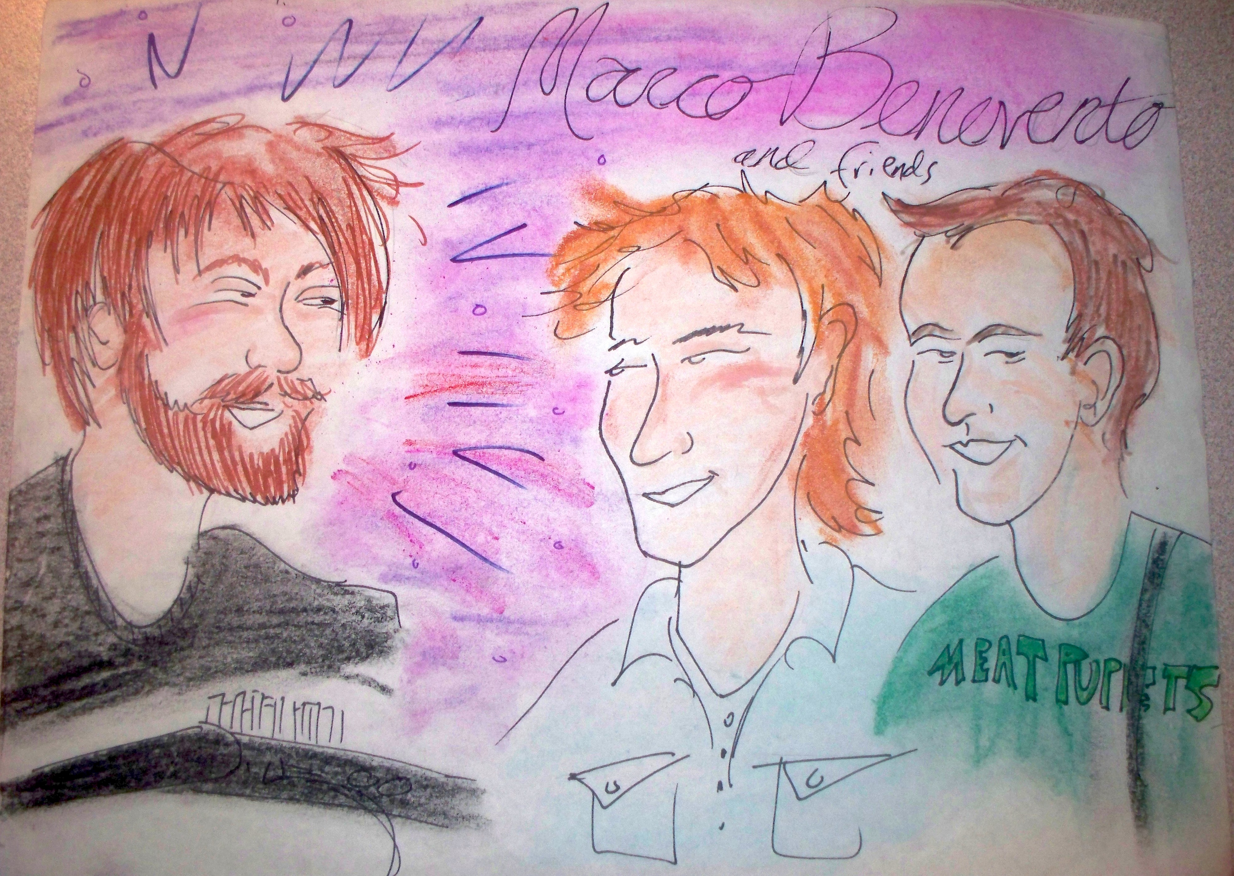 Marco Benevento played his droney shimmering, danceable instrumental jam band pop at the Axe and Fiddle last night and it was a magical show! His band was awesome. That drummer (Andy Borger) was amazing. BAss player Dave Dreiwitz was on his game too laying down the fuzz. I don’t know what to say about the show other than that I loved it.