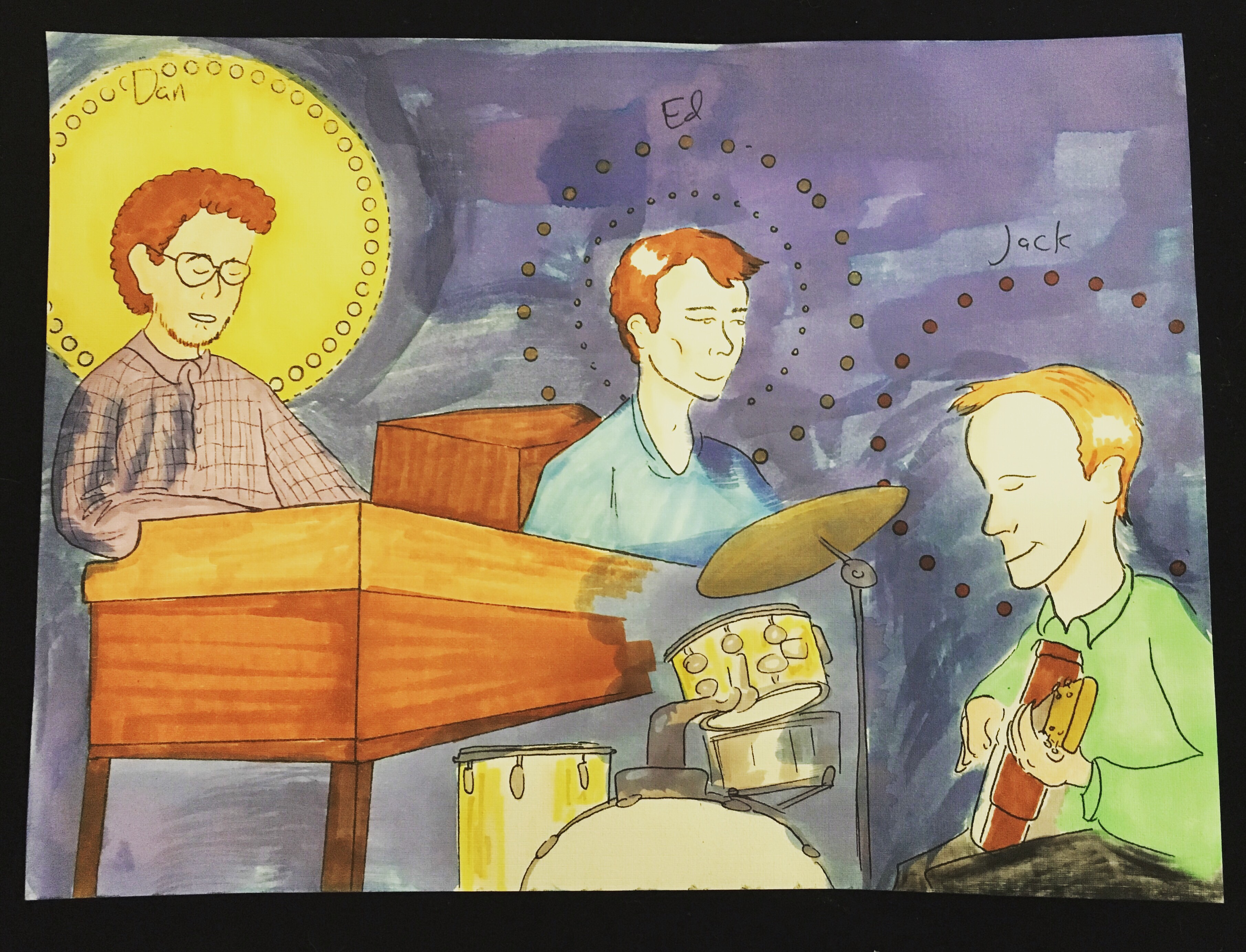 Here’s a drawing of members of “mambo diabolico” they have Richard elfman the filmmaker on bongos. Their vocalist Lena Marie was channeling yma sumac as a tribute! Ego Plum also cocmposes music for SpongeBob and the cup head show.