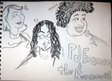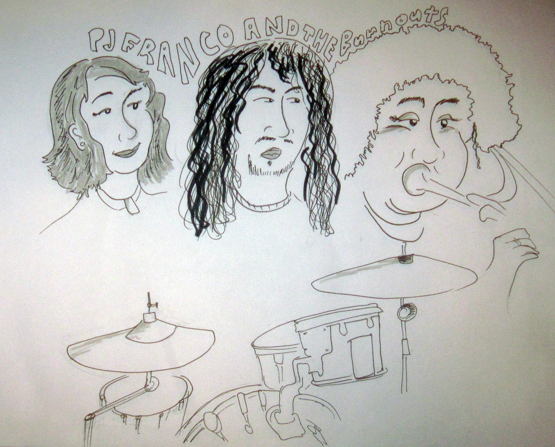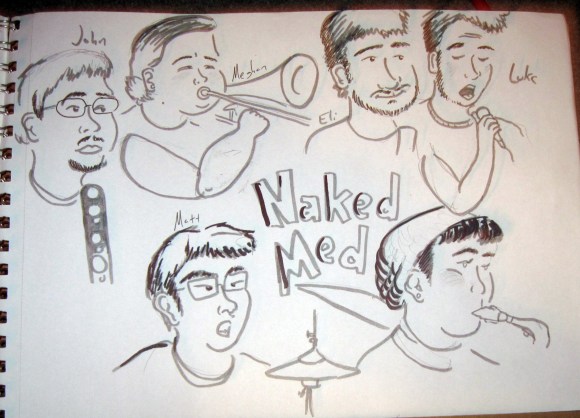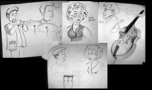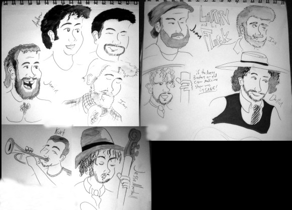 We play Amy Winehouse covers, Black Keys covers, original Jazz cartoon zaniness and whatever we feel like.