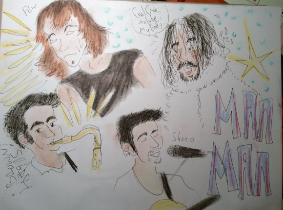 Shilpa writes haunting songs and plays them on the harmonium. She was generous and said she liked my drawing though it looked “like the Caucasian version of me.” Oops, sorry.