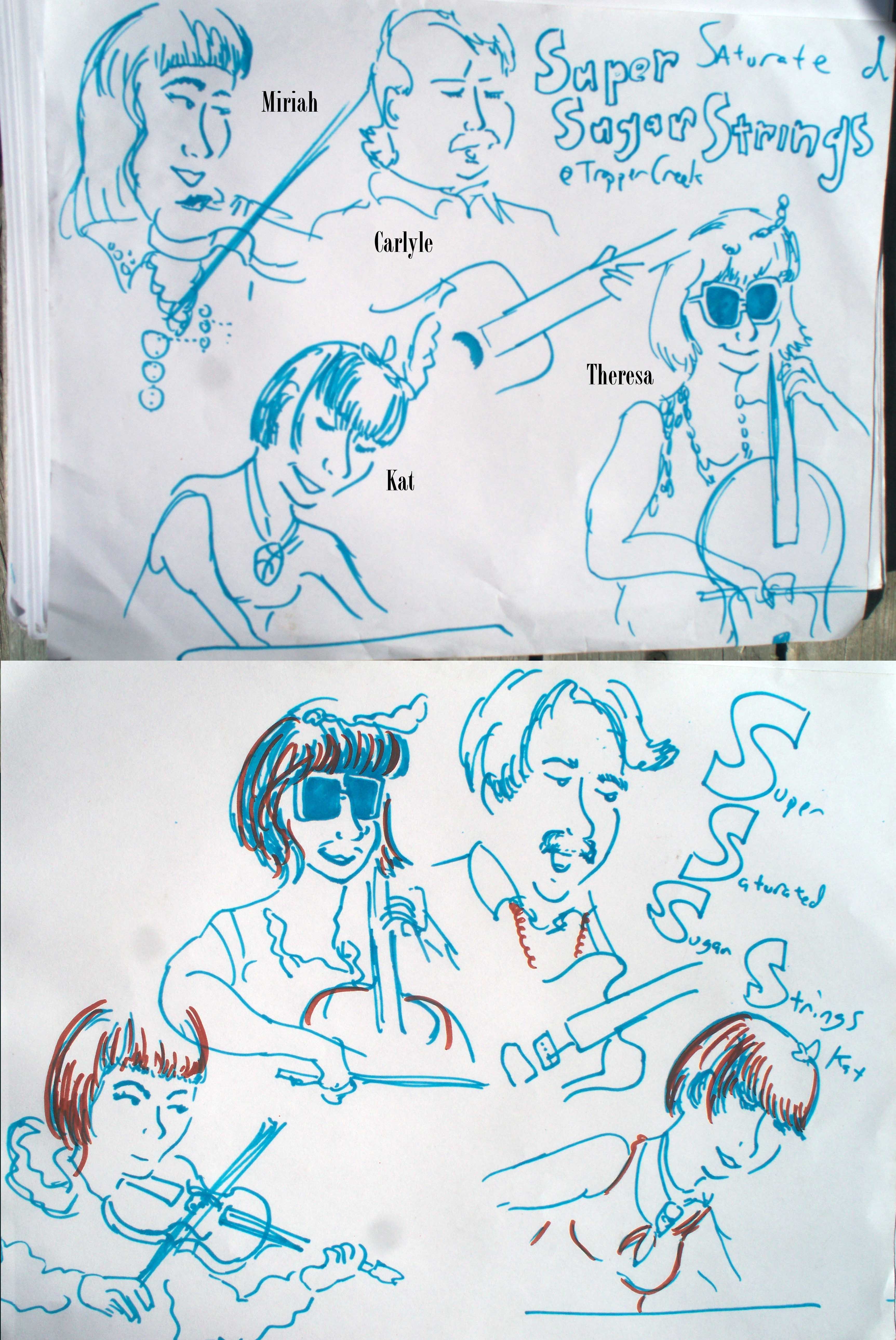 There were also great performances from The Austin Steamers, but I was too tired to draw them. I just stared as they played the fastest bluegrass I ever saw, and watched the smoke waft off their fingers.