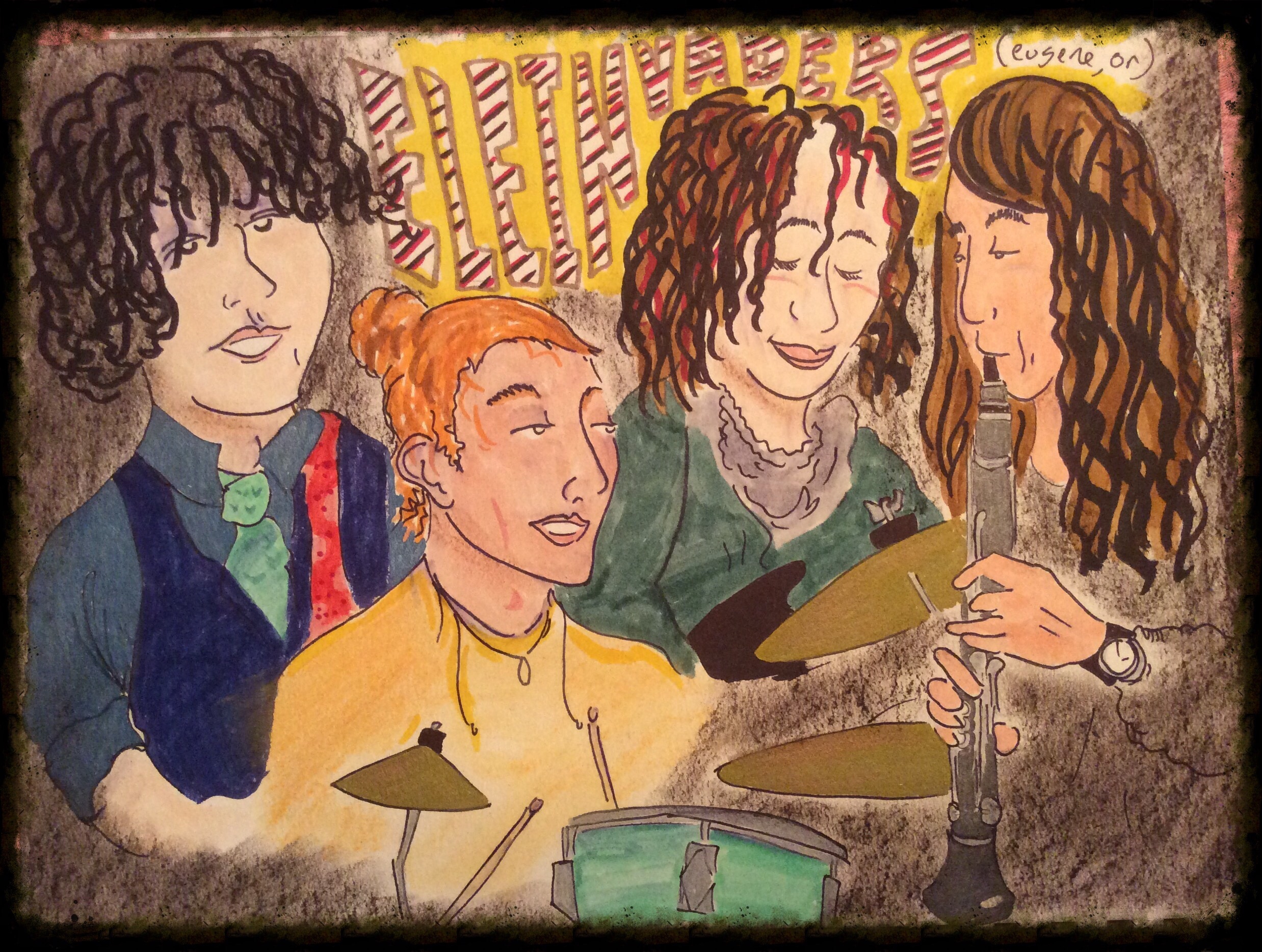 High Step society is going on tour and they released a new album! They always bring the funk and pack the house when they play here in Eugene. They are playing San Francisco and LA and many other places. Here are two drawings I made of this fun, energetic electro swing band. This picture is from a Rebecca Connor “Solo” show she played at Sam Bonds.