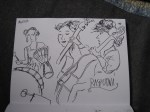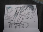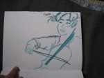 I just got to see Murder by Death, they played the Pub here in Fairbanks and were amazing. Their bass player makes all kinds of crazy ambient sounds with pedals, their cellist provides amazing counter melodies and accentuates with pizzicato, their keyboard player wails the organ like its a demonic choir, or picks up the accordion and pleasantly bobs along, and of course their singer can really really sing. Sometimes he seemed to affect an accent that was a little Pirate, a little Sean Connery, and his range and tone remind many listeners of Johnny Cash. Well they are a show not to be missed, here is Adam holding three of my drawings of them.